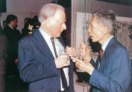 从最初学画,到巴黎求学,再到回国初期,肖像画一直是吴冠中创作根本之一,他认为肖像最忌概念化,概念化的人像不是肖像,并总结道:“笋嫩的美,姜老的辣,青春的美貌惑人,沧桑的人生感人。人的肖像中烙印着心态、经历,透露着奸诈、善良、欲念、抱负,潜藏着喜怒哀乐……然而这一切只能被独具慧眼的艺术家洞察、捕获。”1992年,大英博物馆举办了“吴冠中——一个二十世纪的中国画家”展,图为开幕式上苏利文(左)与吴冠中交谈