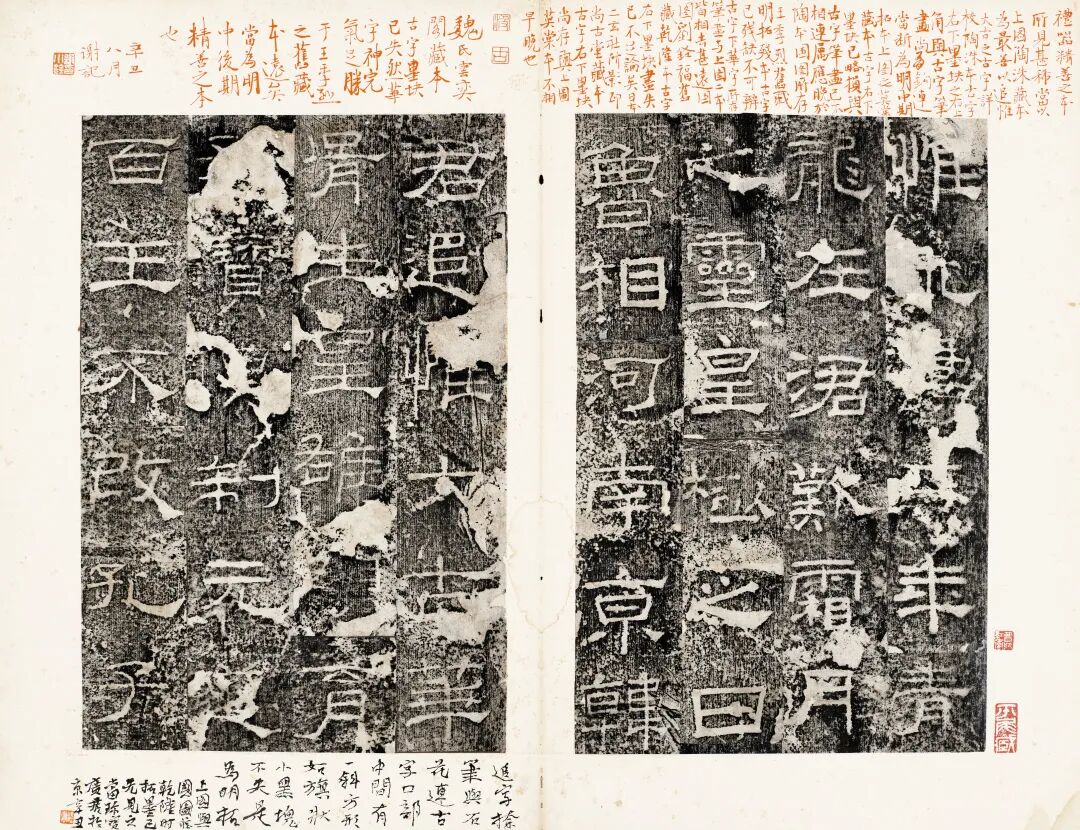 谢小铨还写隶书。他的隶书写得比篆书多,写的是汉隶不是唐隶, 也不是清人的隶书。相对来说,唐隶太老实、规矩,汉隶丰富多彩,谢小铨取法汉隶,不管是《张迁碑》《乙瑛碑》,还是史晨碑。这样的汉隶是有波磔的,有丰富变化的,而且体现了一种金石气,因为是刻出来的,我们看到的原碑或者拓片,经过风化,有历史的痕迹。学颜鲁公是有庙堂气,正大气象。学汉隶增加书法金石气。谢小铨写小字的时候,还有二王的东西。他的书法是用于日常书写的,在他正式对一件东西题跋前,先很随意地写出来作为一个初稿。这种日常书写,又和书卷气有关系,谢小铨的书法向三个结合发展,庙堂气、金石气、书 卷气。小字作为稿子强调书卷气,大字重庙堂气,题跋、隶书有金石气。