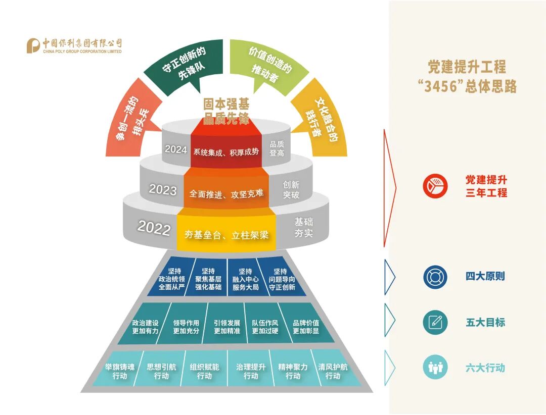 党委副书记、总经理张振高详细介绍了“党建提升工程三年行动”方案。他表示,《方案》是集团公司党委贯彻落实国资委党委“创新拓展年”部署要求,为加强基层党的建设制定的战略性、全局性、牵引性的重大部署,是今后一个时期基层党建工作的总抓手,绘就了未来三年基层党建工作蓝图。《方案》树立大抓基层的鲜明导向,明确“3456”党建提升总体思路,全力实施“六大行动”,部署22项重点任务,努力将保利集团打造成为争创一流的排头兵、守正创新的先锋队、价值创造的推动者、文化融合的践行者。