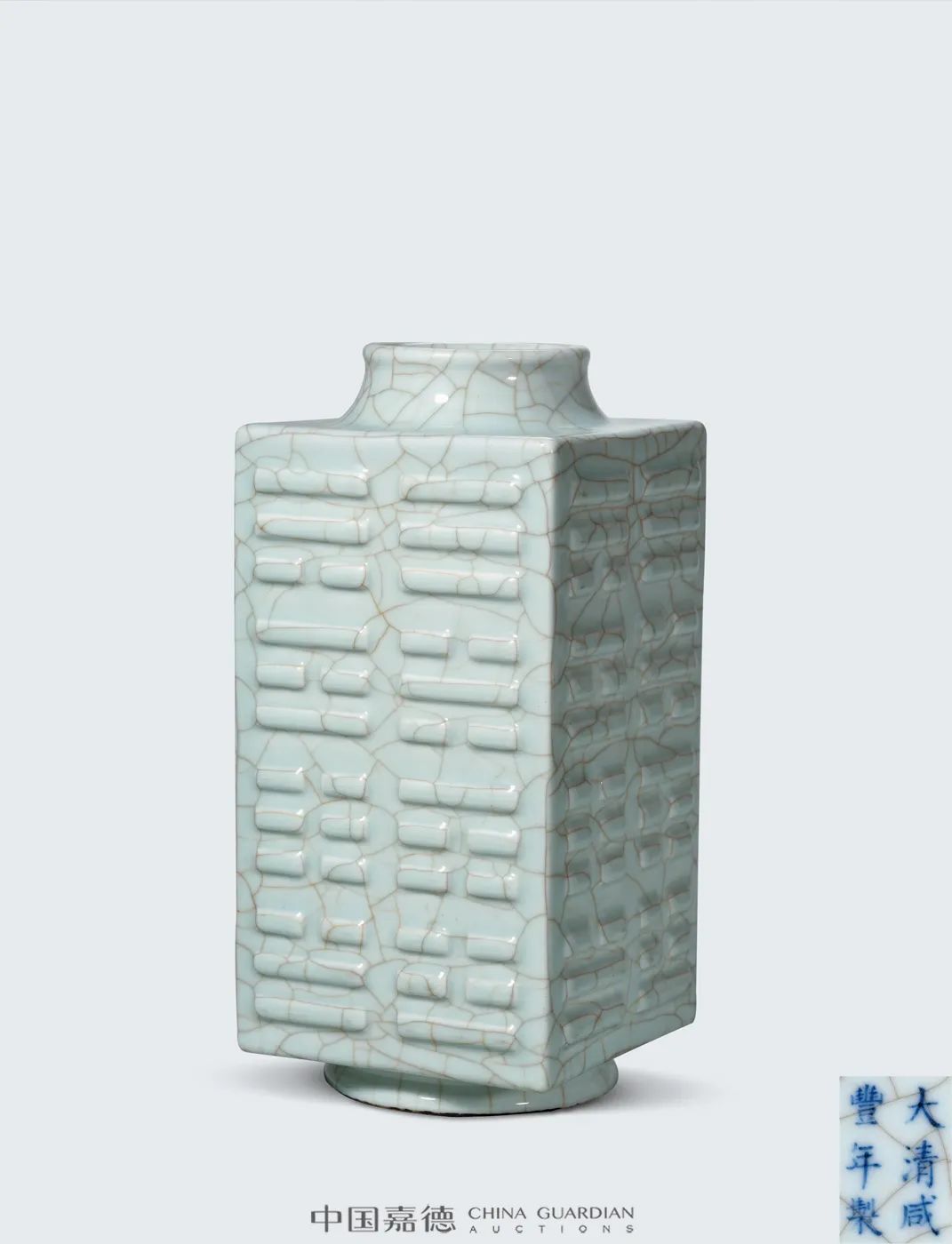 咸丰一朝由于受太平天国运动影响,仅咸丰元年(1851年)和二年(1852年)官窑瓷器可以正常烧造和起运,至咸丰三年(1853年),景德镇便陷入战乱,烧成瓷器无法正常运输,因而传世精品更加稀少,素为藏家所重。故宫博物院藏有类例,可资比较。
