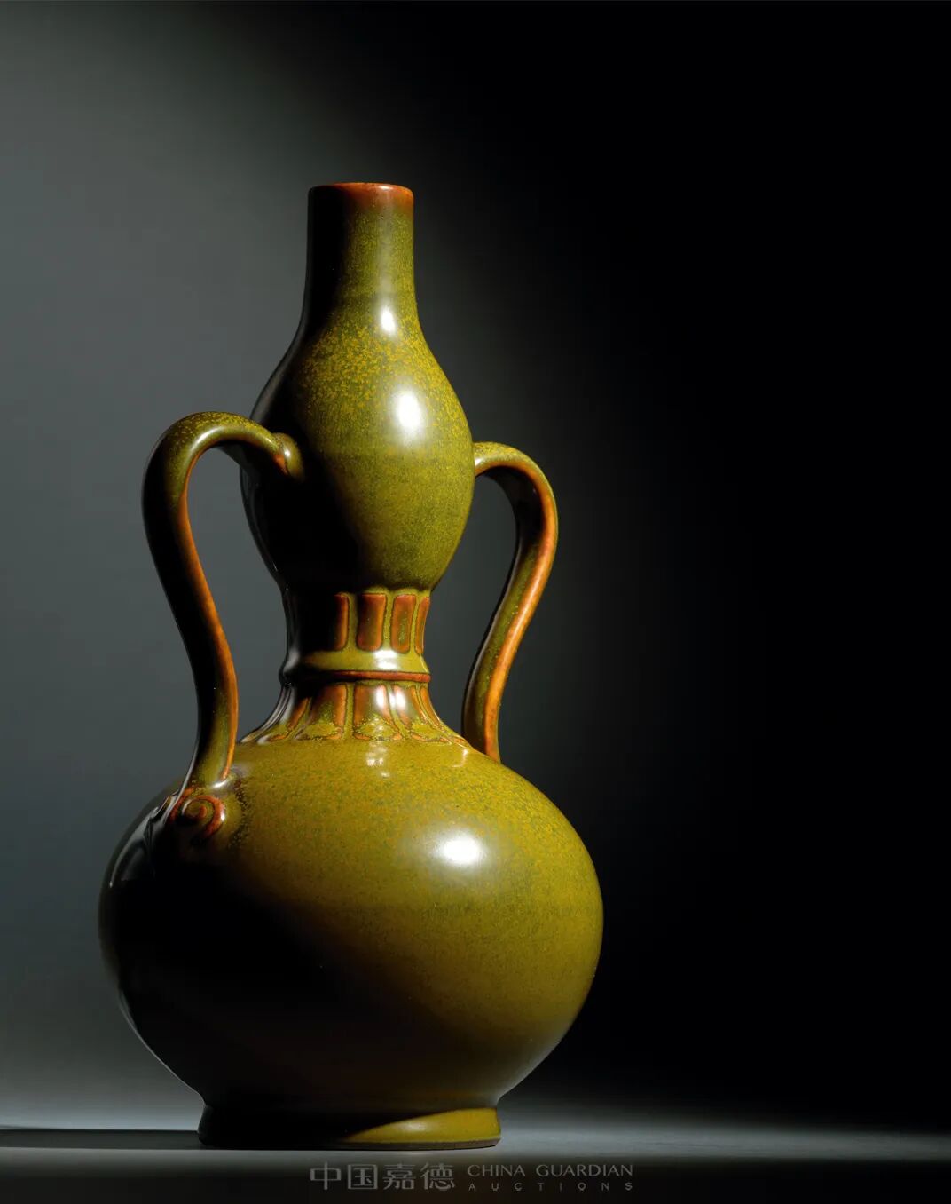 葫芦为长寿象征,并谐音“福禄”,绶带如意耳亦昭示吉祥,秀雅中蕴美好寓意,诚为皇家青睐之物。本品线条流畅,富有韵味。因其形制看起来与“吉”字隐隐相合,又被称为“大吉瓶”。本品器釉形意相合,极富天然韵致,诚为当时皇家青睐之物,因此是不可多得的收藏佳器。