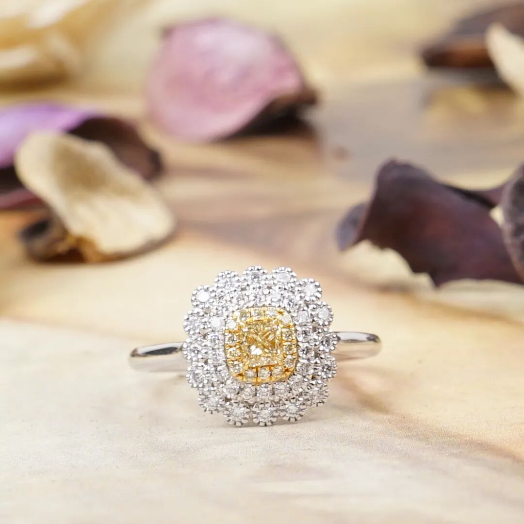 0.22克拉黄色钻石配钻石戒指