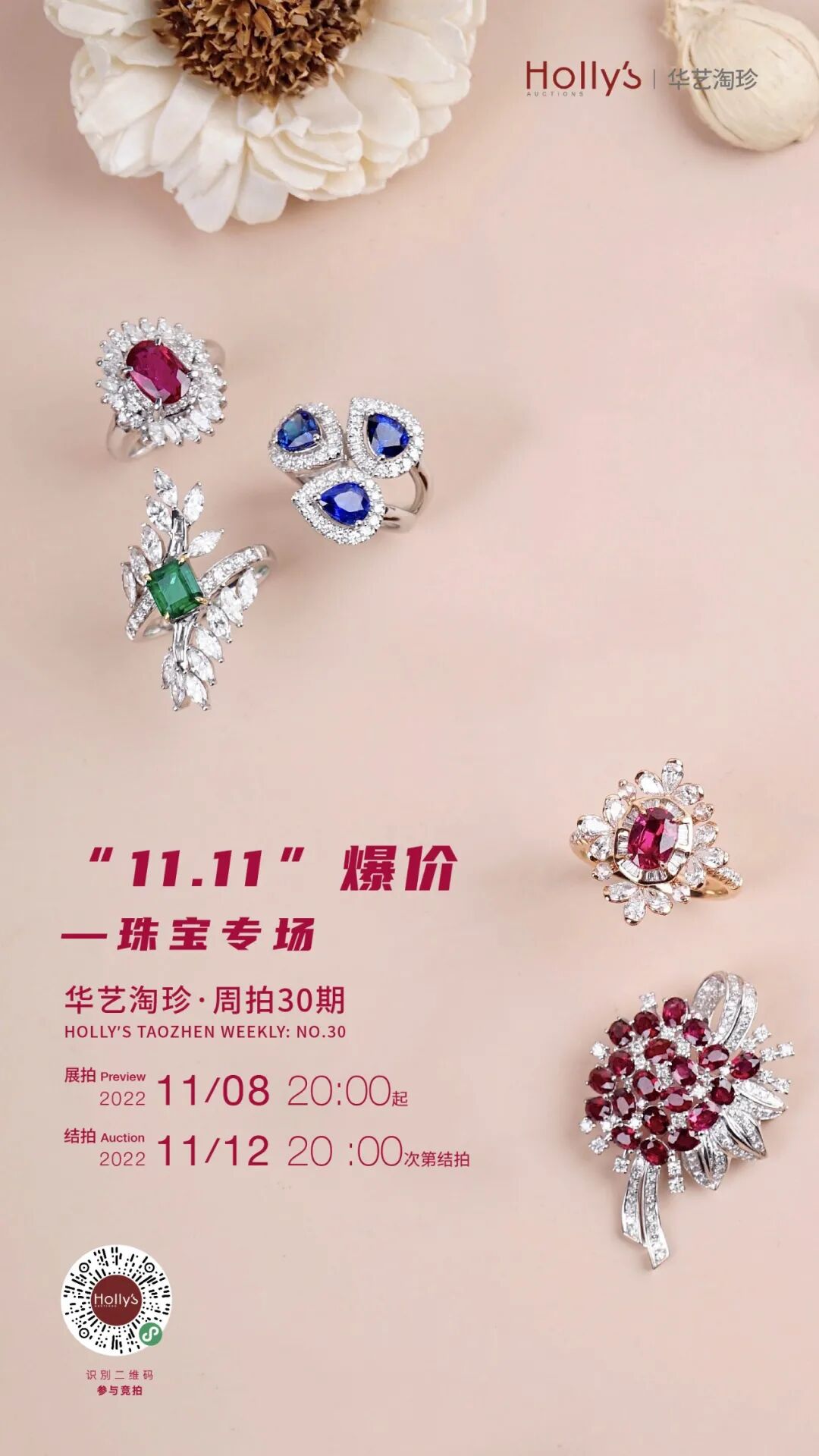 精彩双十一,欢购进行时!本期华艺淘珍低价无套路,为各位藏家、爱好者带来了三个“双11爆价”专场,名贵珠宝、时尚奢侈品及潮流生活系列,错过等一年,机不可失。品质走进生活,这个双十一,你“购”美了吗?