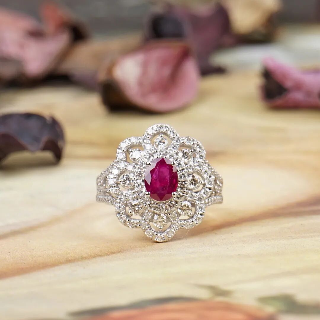 1.20克拉「鸽血红」红宝石配钻石戒指,未经加热