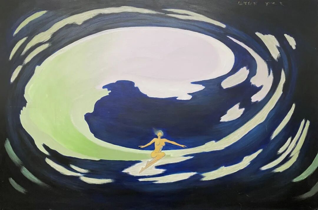 李天正的《混沌初开》把人体置放到宇宙的尺度中加以表现,充溢着、沸腾着一种天马行空式的想象的激情。时空的壮丽、奇观远非语言所能描述,在时、空、人之间,形成了一个磁力线极强的文化场。