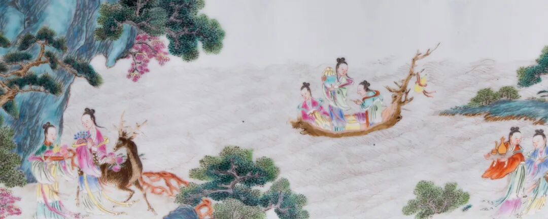 据统计,目前已知的乾隆至道光(1821-1850)年间的贲巴壶共23件。其中包括八件由拍卖公司释出,十五件为博物馆和私人藏家所有。而这23件中有三件为粉地,五件为白地,三件为青花釉里红,两件为斗彩,一件珊瑚红地,一件粉彩,三件绿地,一件为霁蓝鎏金,一件为金地,另外三件为黄地粉彩与此次上拍的贲巴壶相似。来源:牛津Oliver Impey(1936-2005)及Jane(Mellanby)Impey(1938-2021)收藏。