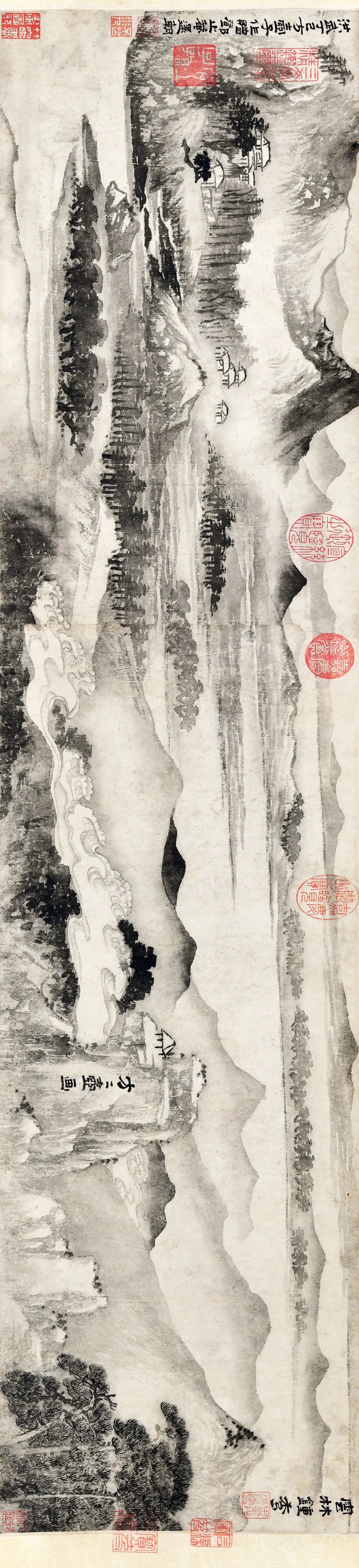 乾隆年间收入宫廷,因为图卷上已有“三希堂精鉴玺”及著录于“石渠宝笈”等印,还有嘉庆皇帝及宣统皇帝的鉴赏及御览之宝,足以证明此卷从乾隆始一直藏于宫廷,极有可能满清灭亡后由溥仪携带出宫,流入于民间,后被当代著名鉴藏家张伯驹收藏。