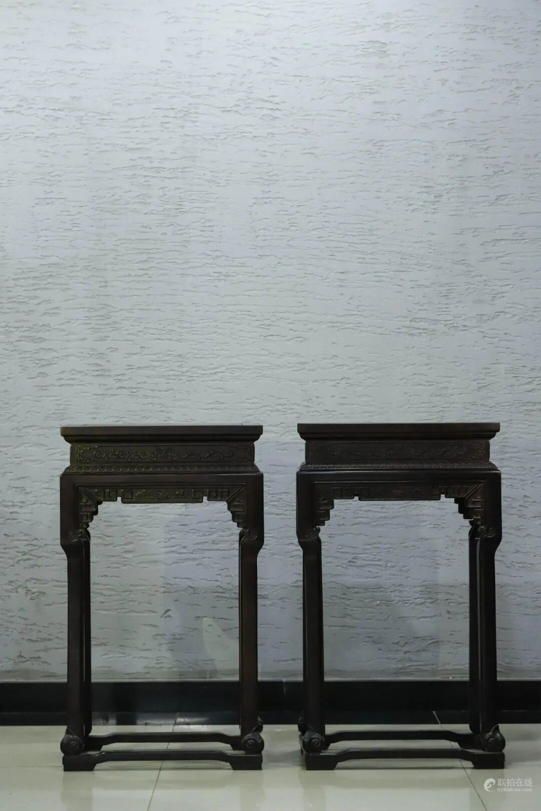 尺寸:H 91 cm,L 53 cm,W 39 cm方几以紫檀料制成,质地坚硬细腻,色褐凝重,包浆温润,板面纹理清晰,如高山垂瀑,行云流水。线条自然流畅,牙条边缘起阳线,直腿内翻马蹄足,凸棱勾边,腿足外角踩凹线,上与束腰及几面相接,下直落至足底,与足胫横条相接。底足处雕刻螺旋状纹饰装饰,桌面下四周的拦板雕刻折枝花卉纹衬托,方几形制端庄周正,素雅简洁,极富美感。其用料、形制、工艺皆为精良。纵观全几,用料考究,处处都经过精心设计,集实用性和美学艺术为一体,彰显乾隆宫廷家具制式的工艺特征,无论从艺术审美、还是人工学的角度来看都无可挑剔。