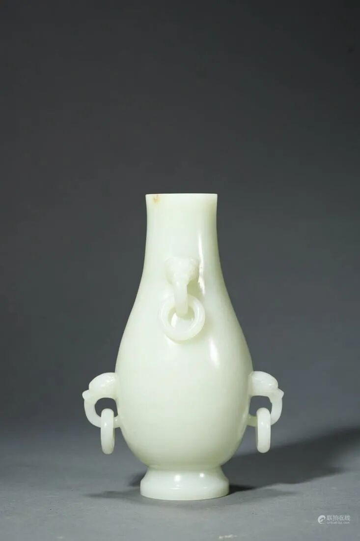 器物以上等白玉精心琢制而成,玉质洁白细腻,油润晶莹,光气纯熟,包浆醇厚。口沿微微外敞,颈部收缩,圆鼓腹下渐收至圈足,足底外撇。巧匠于颈部和腹部雕刻两组对称的铺首衔环耳装饰,兽面刻画精准生动,惟妙惟肖,宽鼻阔口,双目炯炯,气势威猛。器形隽秀俊逸,慕古神秘,以素雅和优美弧线取胜。整器雕工精湛,刀工婉转有力。质朴大气,端庄素雅,具有典型的乾隆时期的工艺特征,十分适合陈设装饰使用或收藏。