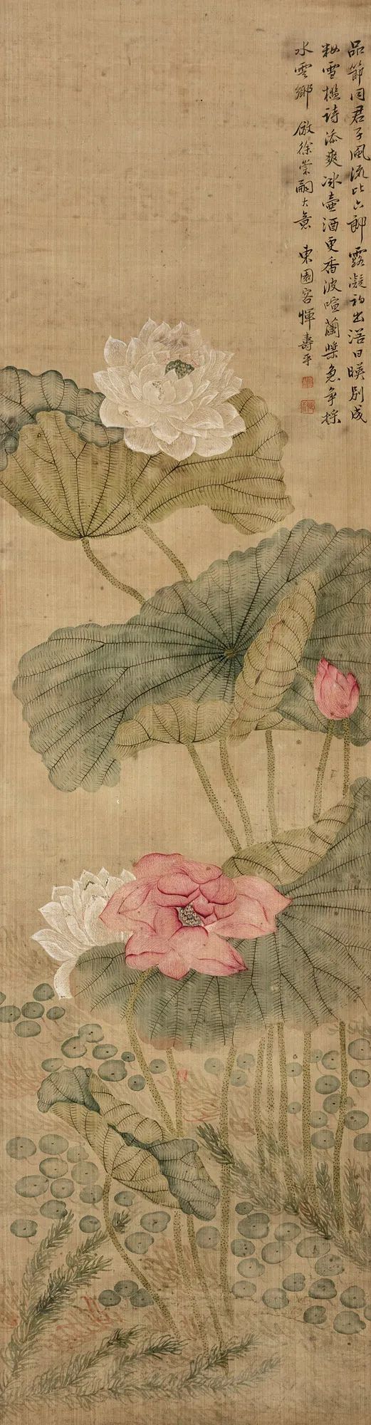 题识:品节同君子,风流比六郎。露凝初出浴,日映别成妆。雪槛诗添爽,冰壶酒更香。波喧兰浆急,争揉水云乡。仿徐崇嗣大意,东园客恽寿平。