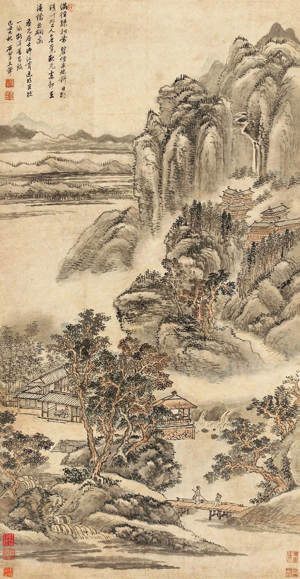 钤印:石谷、王翚之印、上下千年、我思古人、来青阁