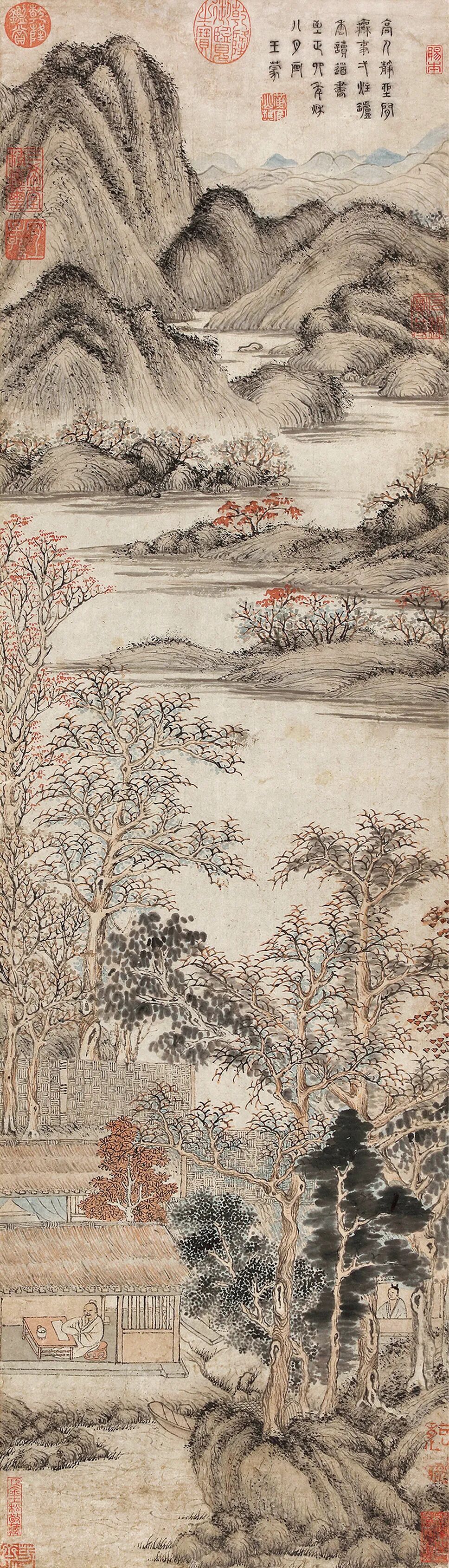 王 蒙(1308-1385) 村居读书图