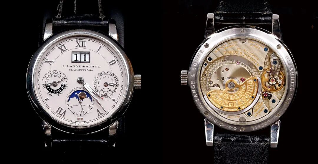 朗格 萨克森PT950铂金万年历腕表,备数位日期、星期、月相、24小时、闰年显示及归零装置