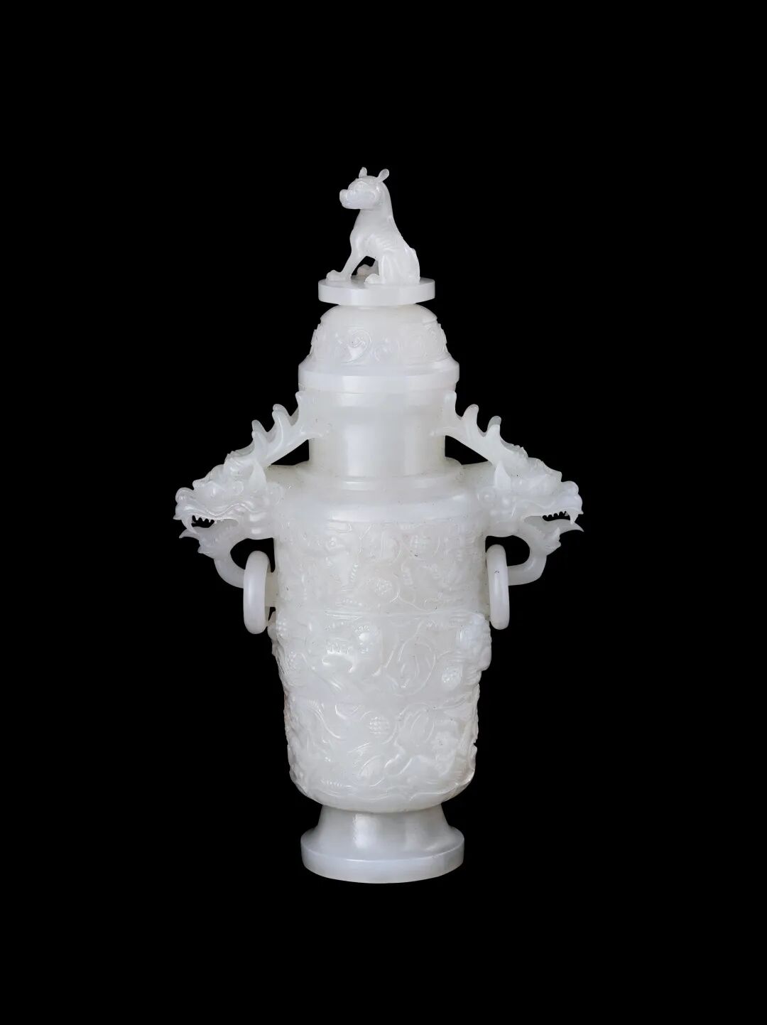 双龙耳天犬盖白玉瓶