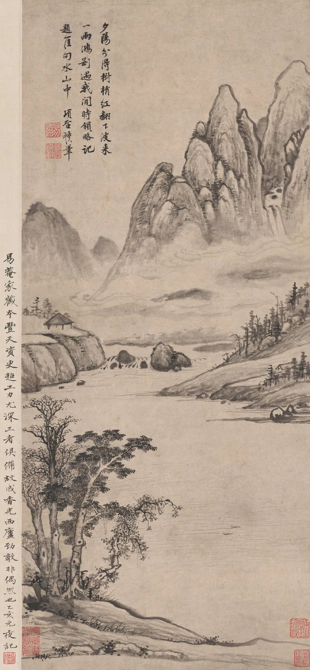 作者简介:项圣谟(1597~1658),初字逸,后字孔彰,号易庵,又号古胥山樵,别号松涛散仙、存存居士、醉风人、大酉山人、莲塘居士、烟波钓徒、逸叟、狂吟客、鸳鸯钓叟,秀水(今浙江嘉兴)人。明代收藏家、鉴赏家、书画家项元汴之孙。自幼秉承家学,喜爱书画。自秀才被荐举至国子监,作太学生,后归隐故里。1644年阴历闰六月,嘉兴城破,其堂兄嘉谟,因守备之职,举家跳湖殉节。圣谟祖传历代法书名画,或掠走,或火焚。圣谟背负老母,携妻子,侥幸逃出城外。擅画山水,兼工人物、屋宇、花木竹石,尤善画松,故有“项松”之誉。山水初学文徴明,远法宋元诸家,笔意淳雅,设色明丽,风格清隽,颇具韵味。亦善诗文。家贫志洁,卖画谋生。传世作品有《风号大树图》《且听寒响图》《寒林雪景图》《雪影渔人图》《山水图》(册)等。著有《朗云堂集》《清河草堂集》等。
