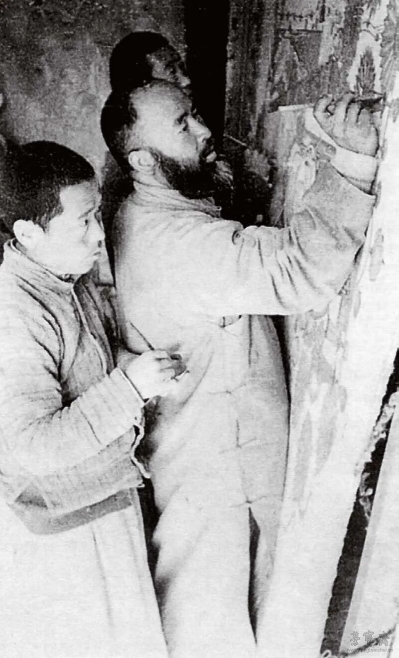 一九四三年八月十四日,兰州三民主义青年团大礼堂举行了首个“张大千临抚敦煌壁画展览”,包括大千精选由敦煌带回之二十一幅临摹作品,其中榆林第一窟《西夏时水月观音》,备受瞩目。该作画于布面,方正构图,敷色厚重,真实的还原了榆林水月观音的形象,乃大千最早之临本,现藏于四川博物院。此次展览反响热烈,媒体好评如潮:“前往参观者拥挤异常”,“各界人士均一致认为此项作品实为张氏近年之杰作”,“均别具风格,观者无不饱赏眼福而去”。