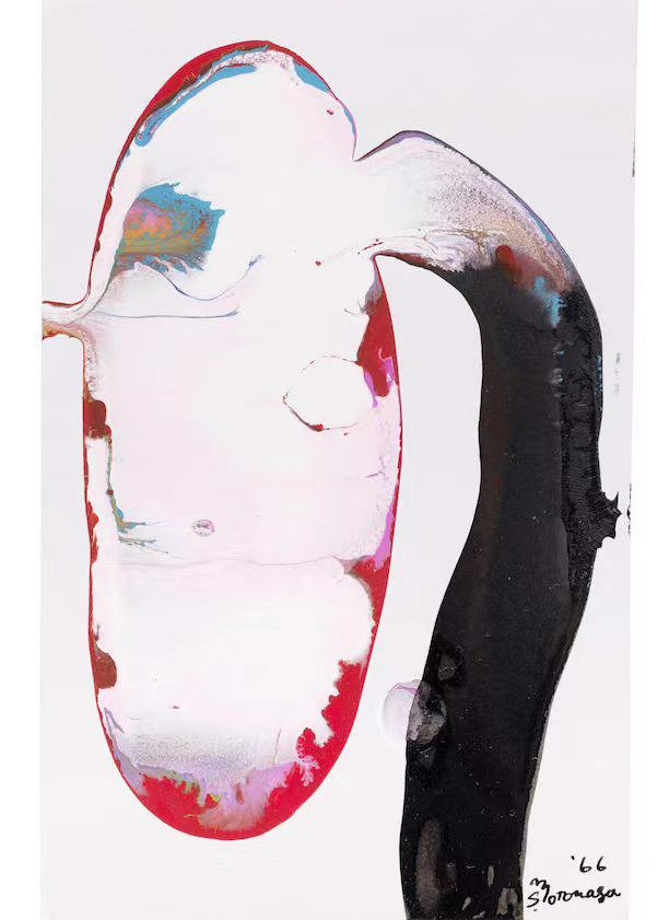 元永定正是具体派重要成员之一,在日本战后时期提出前卫果敢的艺术新概念,对战后国际的当代艺术发展影响深远。本作出自一九六六年,也是元永定正的创作鼎盛时期,见证了他加入具体派近十年后的主要创作风格。颜料的自然流动和滴漏让他非常感兴趣,不能预测的偶发性美感启发自日本一种命名为“tarashikomi”(滴落式)的传统绘画技巧,以滴落或涂抹方式把未完全干透的颜料一层一层地重叠在一起。色彩在没有既定的限制下蔓延、相融及蜕变,充满如有机体般的精神韵味。
