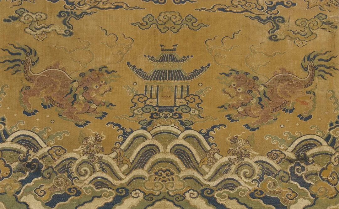 清十九世纪 刺绣海水江崖云龙戏珠纹桌帷