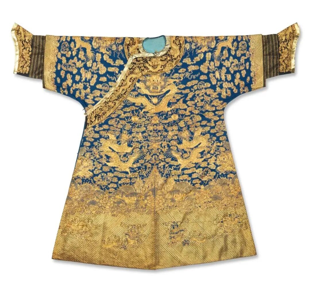 清末 蓝地绣暗八仙云龙纹吉服袍