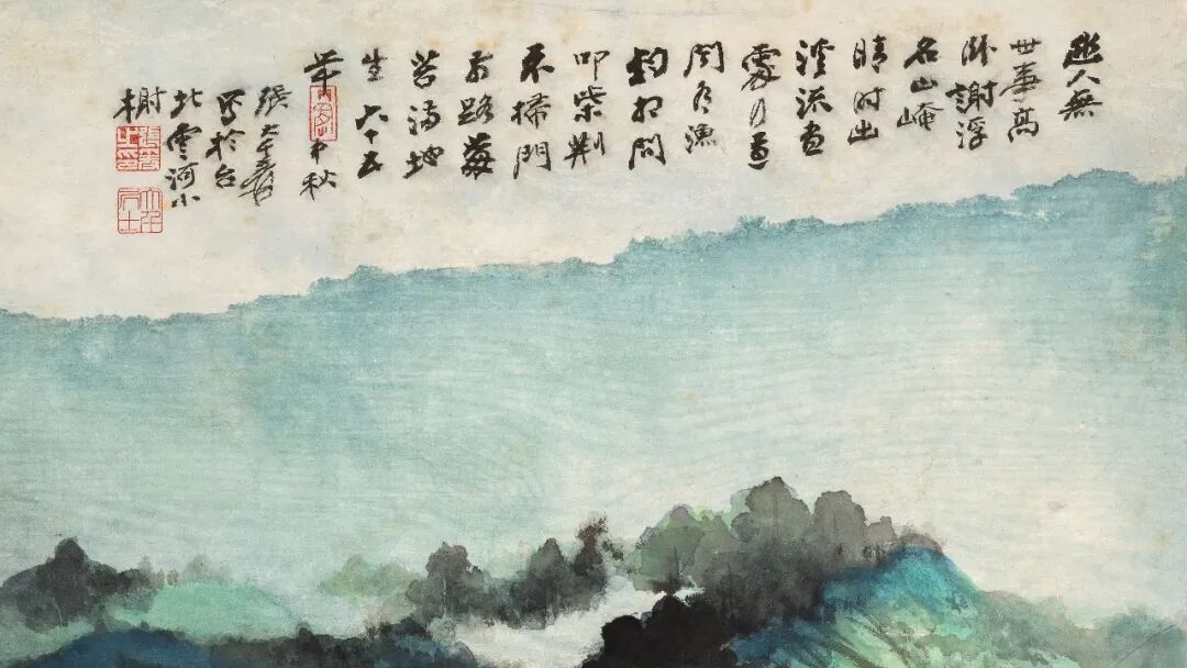 通览是帧,先生写峰影青苹、欲隐林泉之意,诚如题识所录元代揭傒斯诗言。《翠云晴岚》既得反复泼染之层次,亦见色彩厚积于局部之量感与气魄,青绿积淀之貌,皴写纯熟之状,粲然可堪化境,所见已自古人蜕化而出,融而为新,以先生“作书作画,皆以气盛,得之者,精神灿烂,出之纸上”言观之,实不虚也!