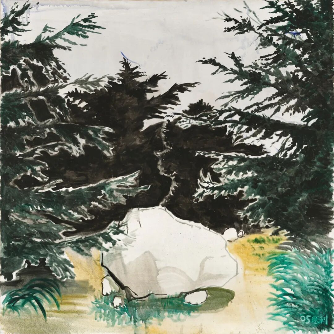 周春芽因爱犬“黑根”而开始狗的系列创作,而其中“绿狗”则成为他艺术创作中的经典符号。他曾说:“绿狗是一种象征,一种符号。绿色代表了安静、浪漫和抒情,它预示着爆发前的一种宁静。” 此幅《绿狗》造型鲜活,笔触生动,同时具备了文人花鸟画简洁的形态以及雕塑的体量感,属同系列中的精品之作。