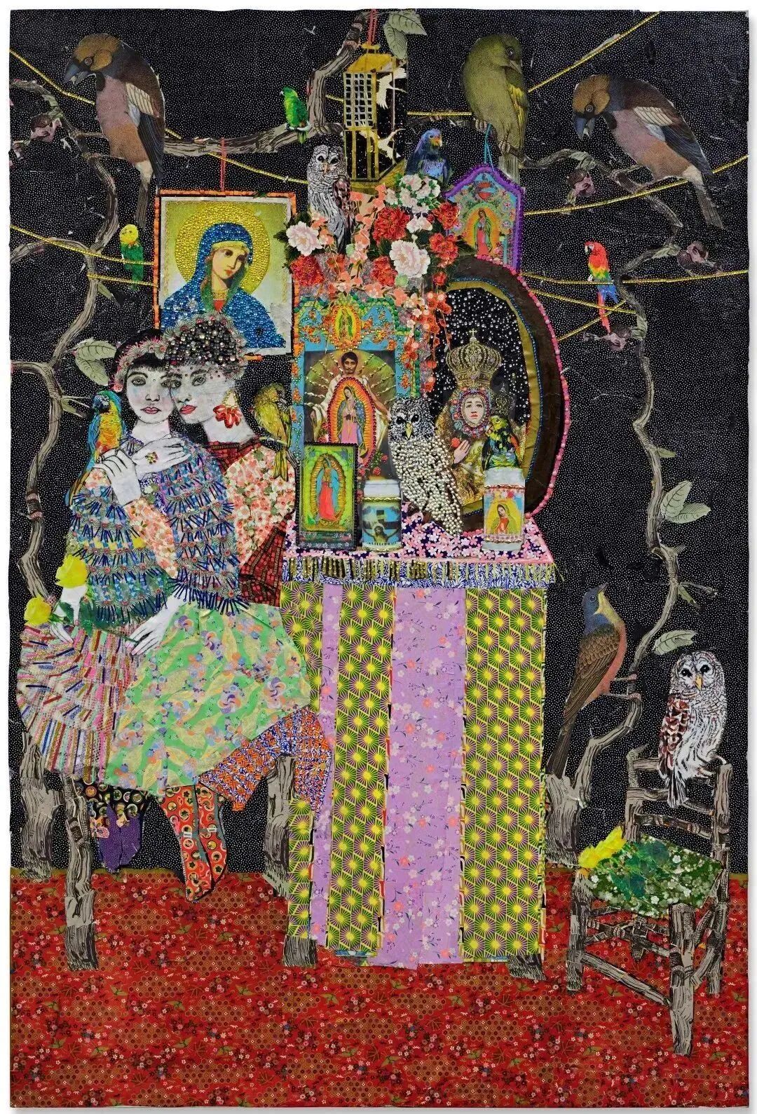 2015年作,水彩、莱茵石及和纸拼贴于画布,