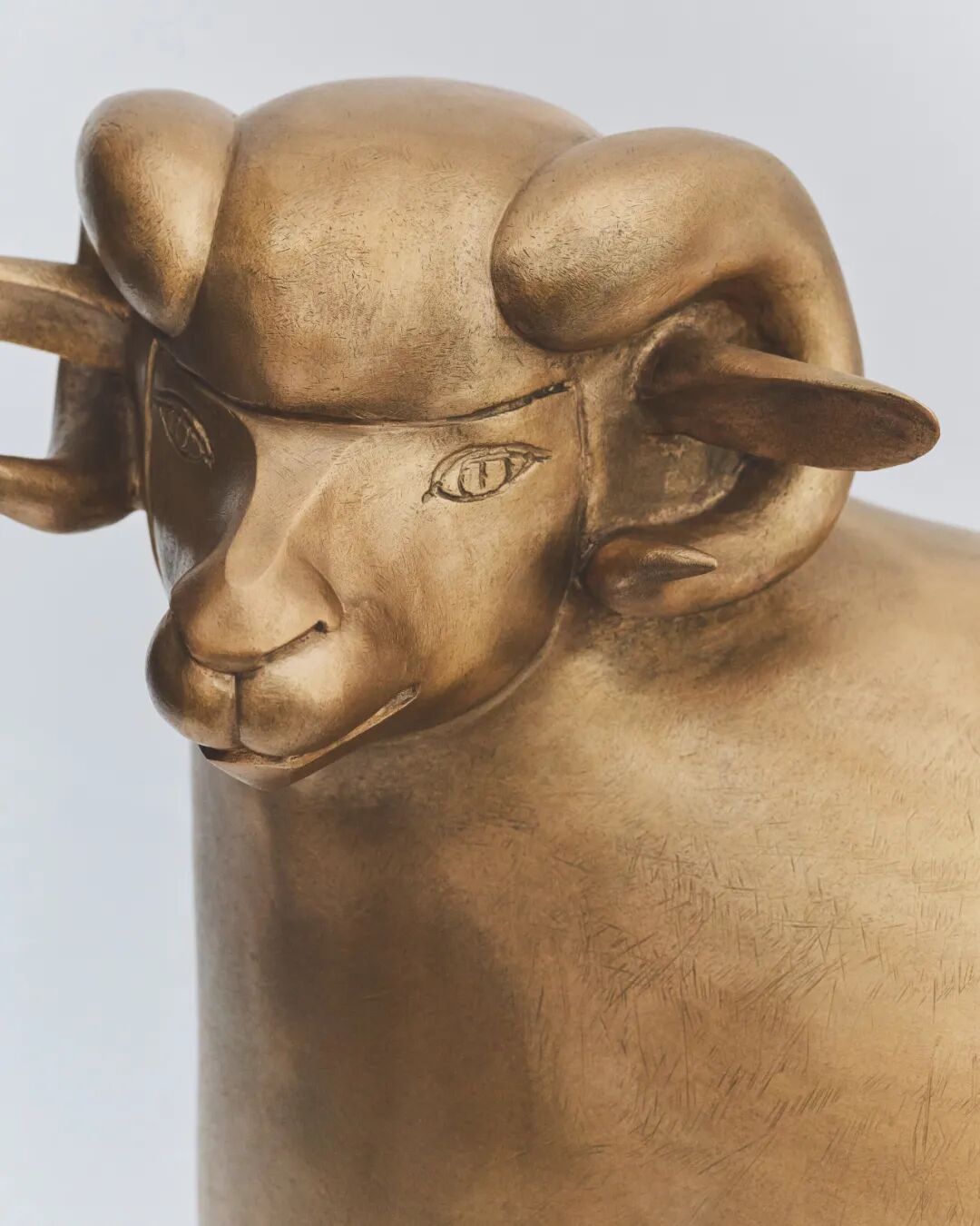在弗朗索瓦-格扎维埃的作品中,大自然没有停驻在青铜里,而是灵活配合材质,锐利的边缘变得平滑,质感也更柔和。他把动物的形态变得截然不同。他的作品《小英雄犬II(小狼)》(Petit Chien Héroque II (Loulou),2002年作)以家里的其中一只狗为原型,小狗以后腿保持平衡。弗朗索瓦-格扎维埃利用这个姿势把小狗提升到更高的层次,体现标题提及的英雄主义。《彼得的三只大羊》(Les Trois Grands Moutons de Peter,2007年作)也一样。作品中的三只羊包括一只母羊和两只公羊,全部都以鎏金铜制造。这种在乌里郊区常见的平凡动物,在弗朗索瓦-格扎维埃的眼中变成气势慑人的动感题材。弗朗索瓦-格扎维埃·拉兰内(1927-2008) 《彼得的三只大羊》,2007年作,鎏金铜,彼得的母羊I:81.2 x 100.8 x 44.4 cm.;彼得的公羊II:81.9 x 102.9 x 41.9 cm.;彼得的公羊III:81.3 x 100.4 x 44.4 cm.。估价:1,500,000 - 2,000,000 美元。此拍品将于12月7日佳士得纽约“雕塑天堂:玛丽.拉兰内珍藏拍卖”中呈献