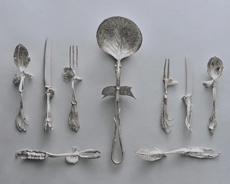 克劳德·拉兰内 (1925-2019) “伊奥拉斯”餐具,约1966年制,银,一套60件,最大:长 36.3 cm.。估价:70,000 - 90,000 美元。此拍品将于12月7日佳士得纽约“雕刻天堂:玛丽·拉兰内珍藏拍卖”中呈献