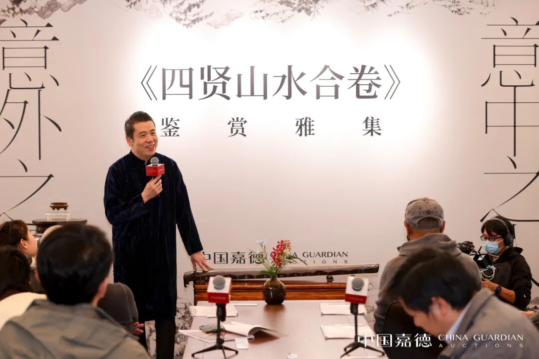 2022年11月10日,“意中之人、意外之遇”鉴赏雅集在嘉德艺术中心举行。数位资深学者、藏家、媒体人与我们一道,静听古琴演奏,赏读晚明先贤:杨文骢、王时敏、张学曾、恽向,为友人杨补所绘《四贤山水合卷》,并就该手卷的创作母题、笔墨风格、时代背景,其后蕴含的历史脉动,以及这件作品的绘画史与思想史意义展开讨论。