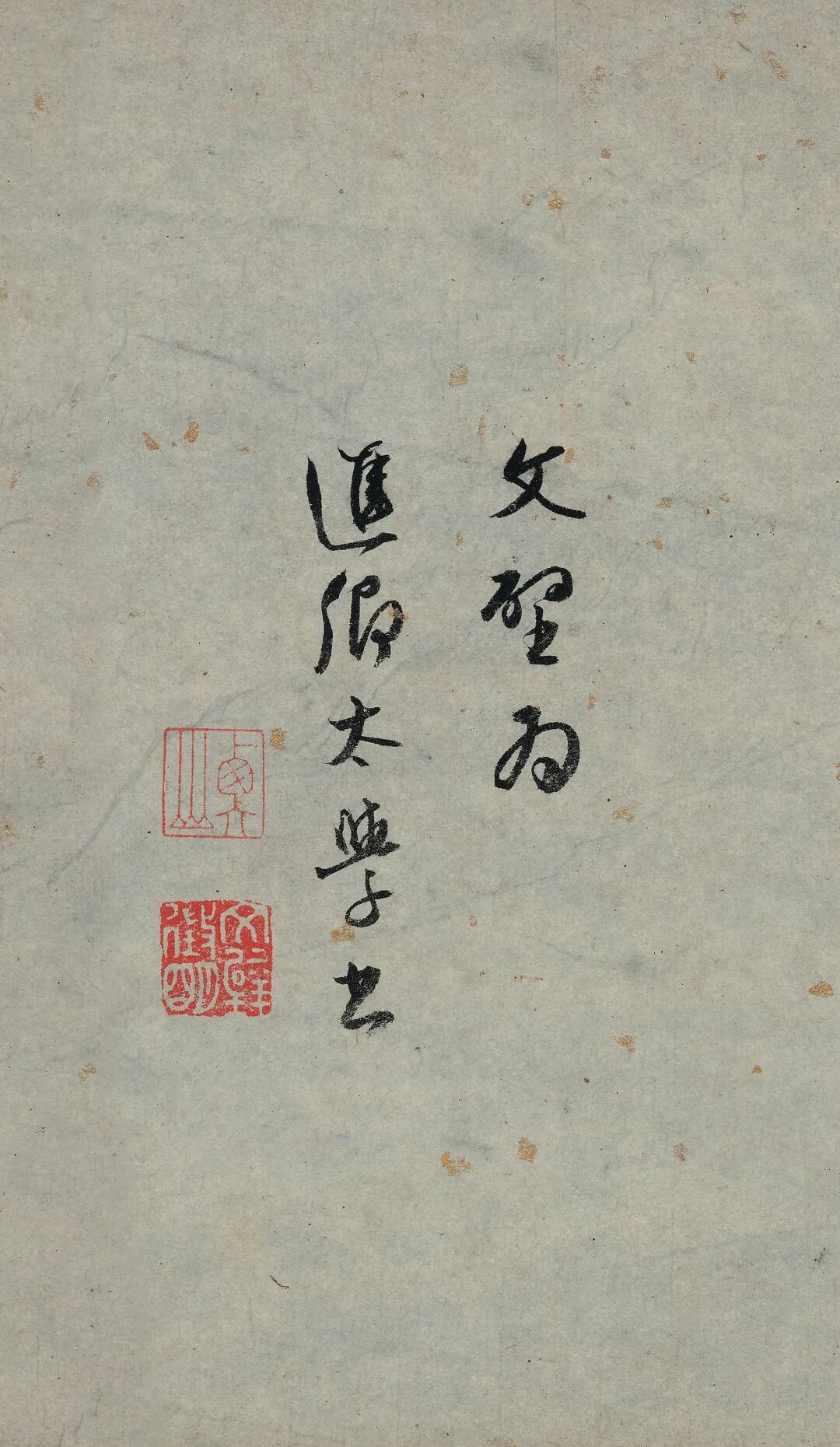 《松冈图》前为文徵明隶书引首“松冈”二字,写在花青洒金笺纸上(图十四)。