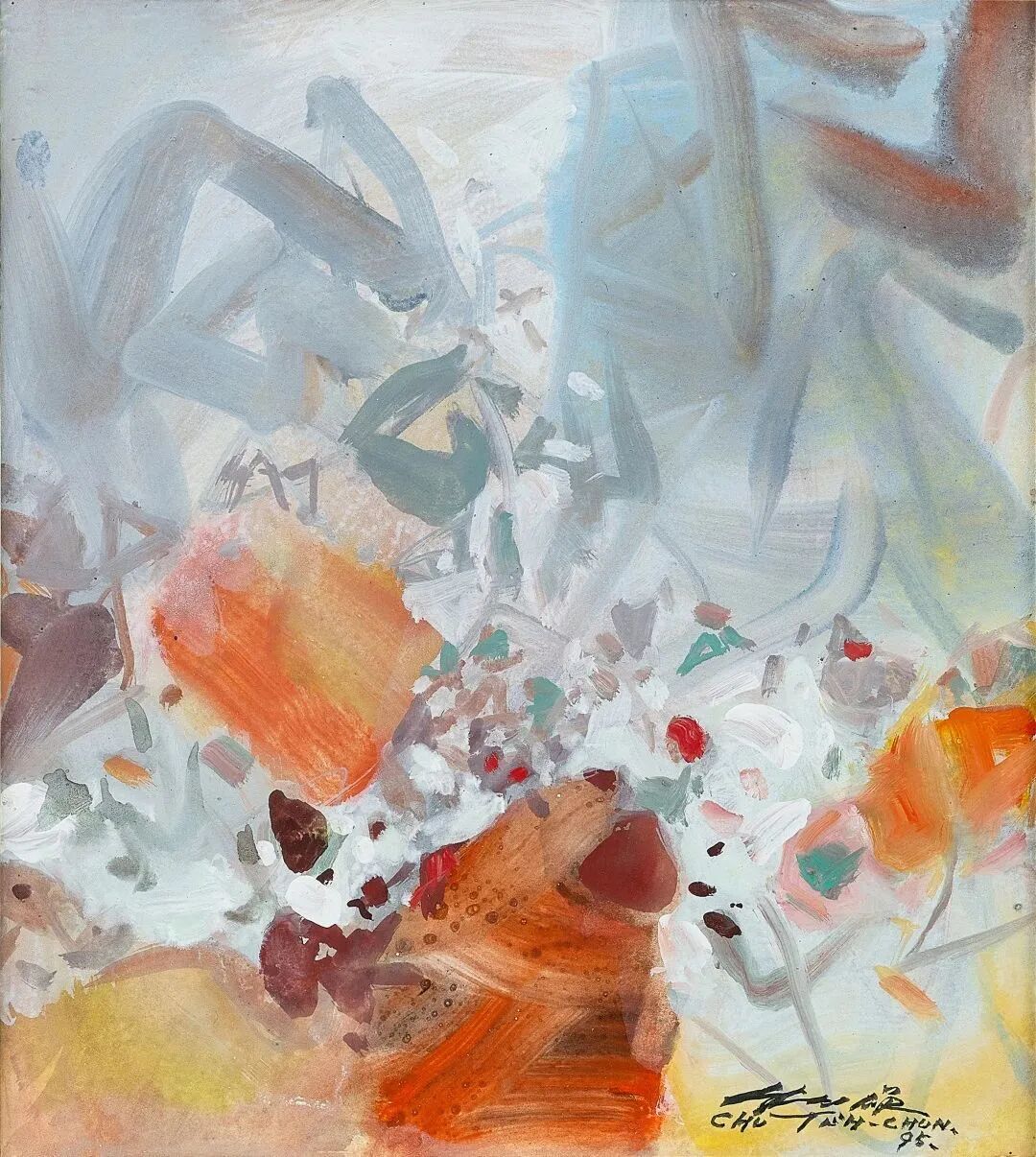 陈钧德的作品中可见印象主义与野兽派的色彩运用及笔触表现,而画中意境又可见中国式的写意精神和自由。《静物》中可见艺术家如印象派大师塞尚一般,对静物及空间的解剖;《史前记忆》更是用抒情手法描绘出一幅抽象风景,尽显艺术家独特的海派风格。