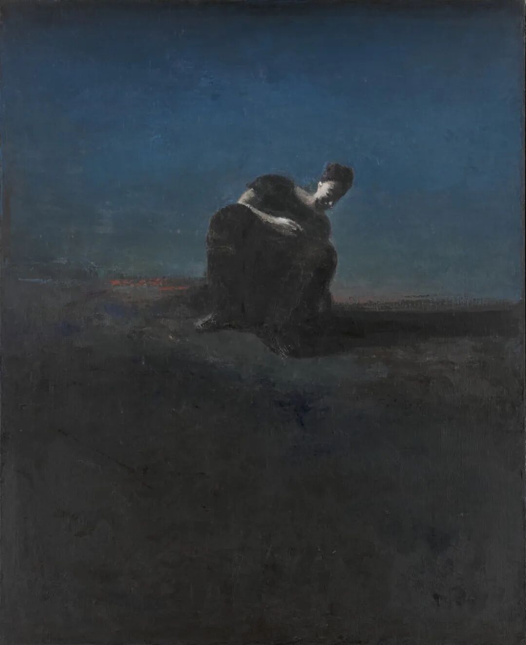《无题》邱瑞祥首次登上国际拍场的作品,显示出艺术家运用暗色颜料的功力,昏暗画面配以纯色衣服模糊了主角的时代性。艺术家创作出去个人化的"无名氏",营造出迷雾笼罩着的神秘孤寂且耐人寻味的世界。
