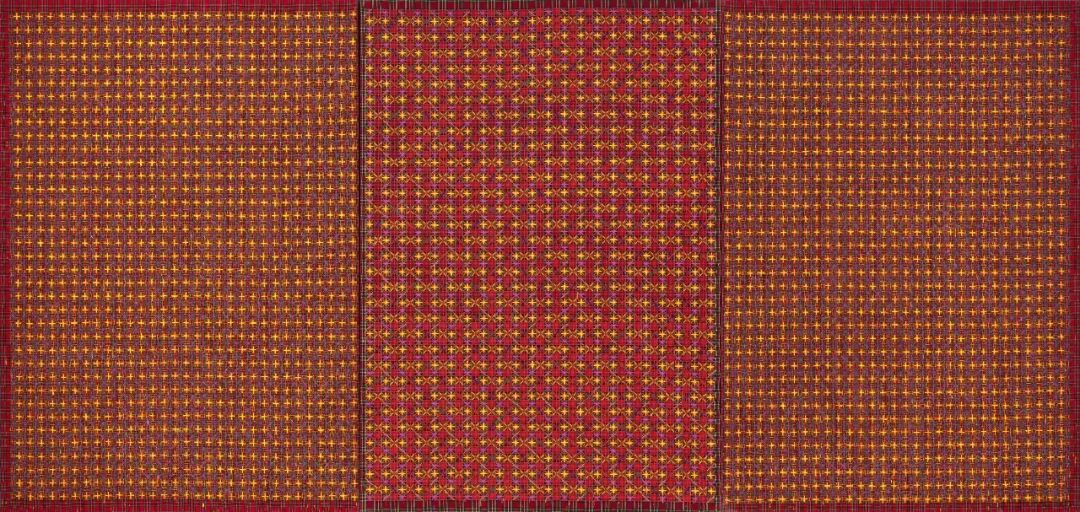 中国当代抽象派先驱丁乙追求严谨精确的绝对化,他以极度规律的手法不断重复绘制着标准化的十字形图案,比喻中国资本主义下的劳工阶层。创作于丁乙参与1993年威尼斯国际双年的后5年,此幅极具代表性的三联作不但是藏家推崇的红色主题杰作,更曾在上海民生美术馆(2011)展出。