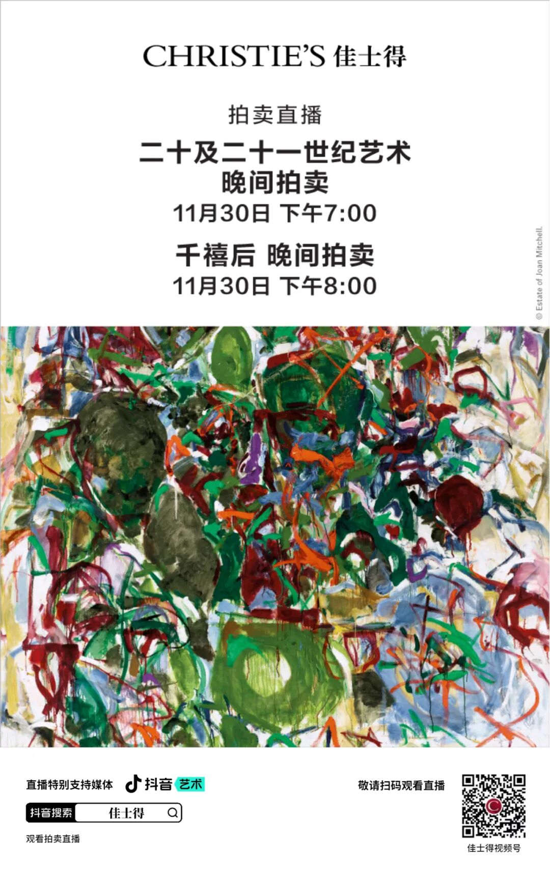 届时我们将于包括佳士得视频号及抖音在内的多平台进行同步直播“二十及二十一世纪艺术晚间拍卖”,欢迎阁下通过以下海报中的二维码预约注册观看精彩直播。