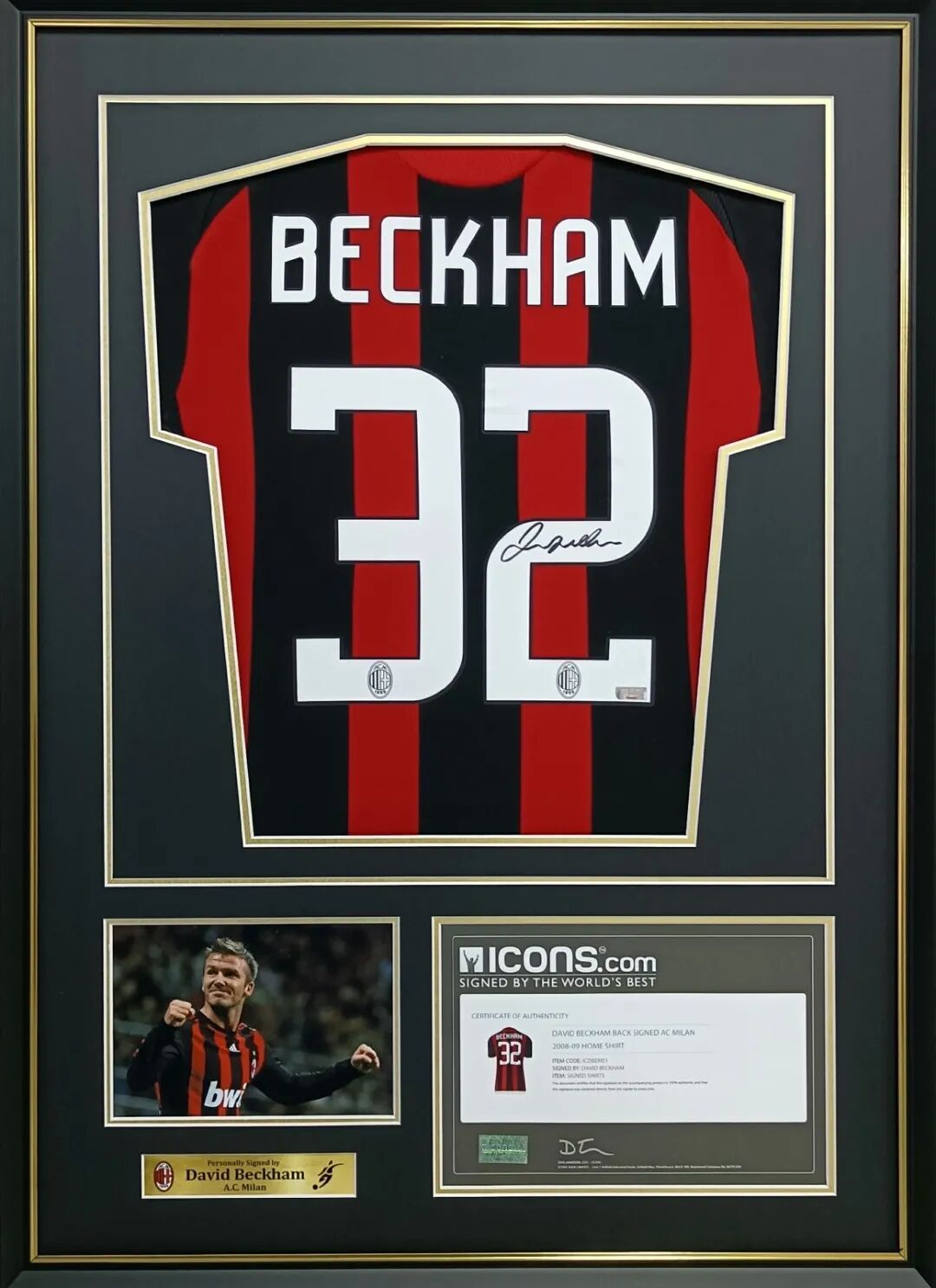 英格兰名宿 大卫·贝克汉姆 亲笔签名AC米兰球衣