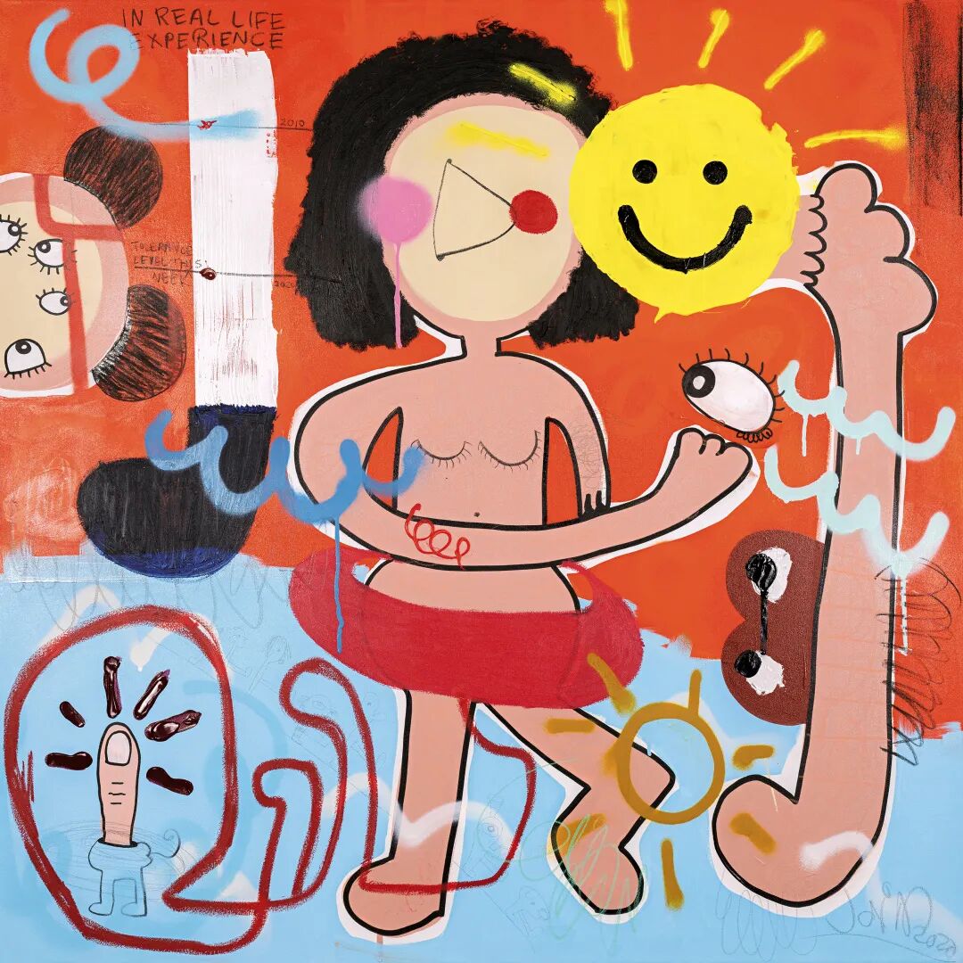 艺术家乔伊·穆鲁加维勒是一位有着棕色皮肤的澳大利亚艺术家,幽默和玩耍是她作品中的主要线索,也是她从父亲那里得到的关于生活的灵丹妙药。在这些充满明艳色彩和可爱的图形和丰富细节和肌理效果的作品中,艺术家用各种奇怪的涂鸦和自言自语,编织了一些史诗般复杂的故事情节,为了说服自己不再自我欺骗,不再对完美的世界执迷。