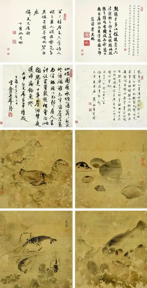 这套册页合共8开,其中4开为设色绢本,高22厘米,横20厘米,均为黎遂球所作;4开为水墨纸本,尺寸不等。