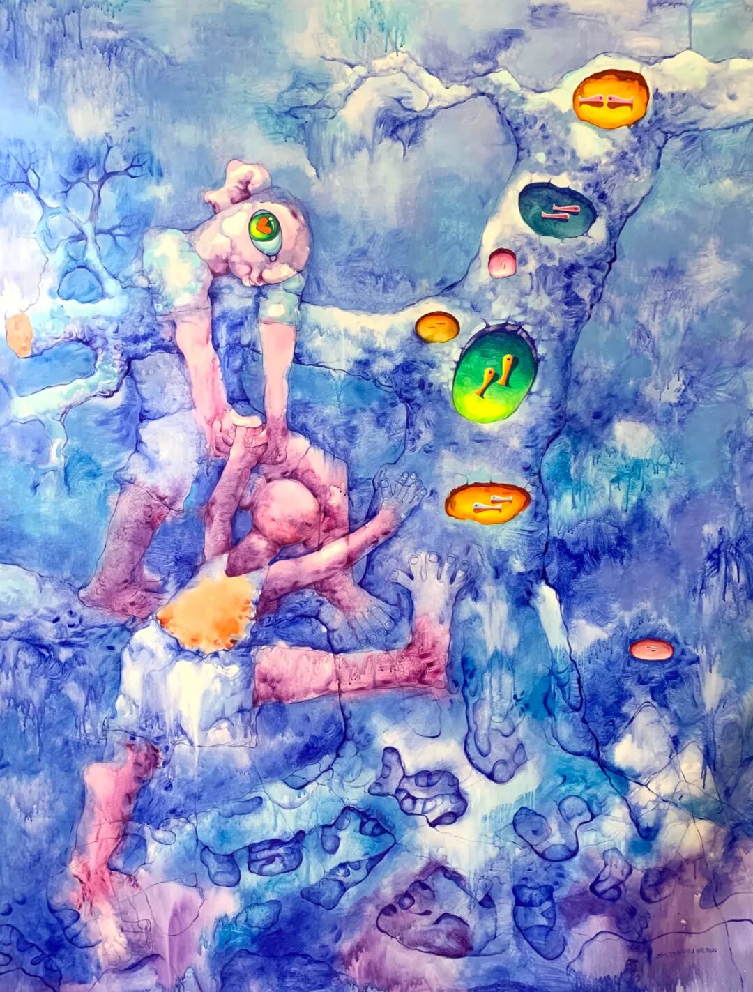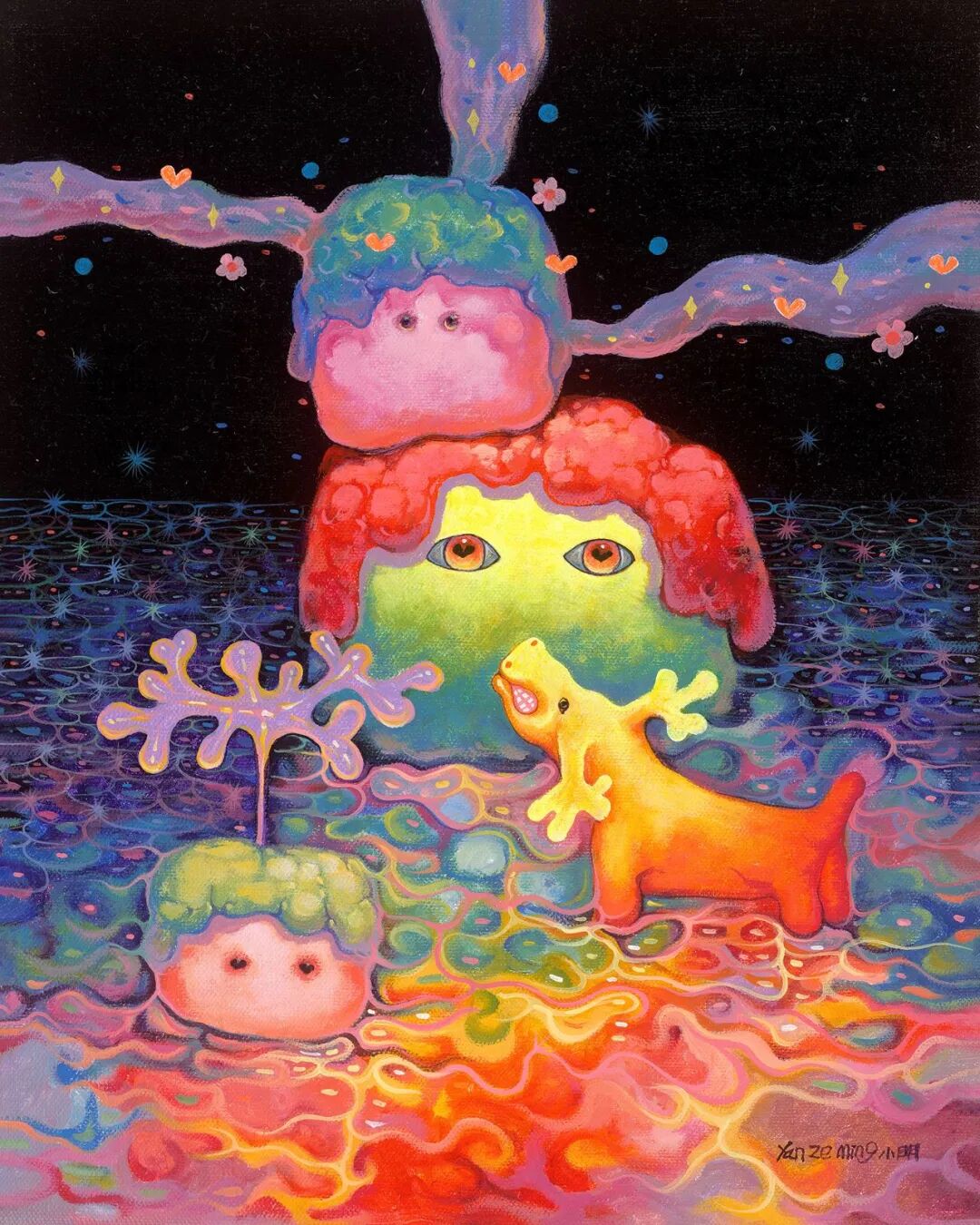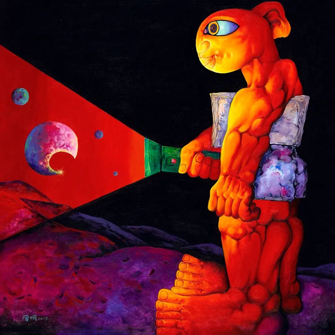 作为“80后”新锐艺术家,严泽明将抽象主义与超现实主义相结合,自己化身成画中的那个出镜率最高的小人物,身上那股拧巴、不服输的劲儿令人动容。在那奇幻怪诞的画风背后,是他对故乡、人性、情感、生存环境等人文关照意识的呈现。