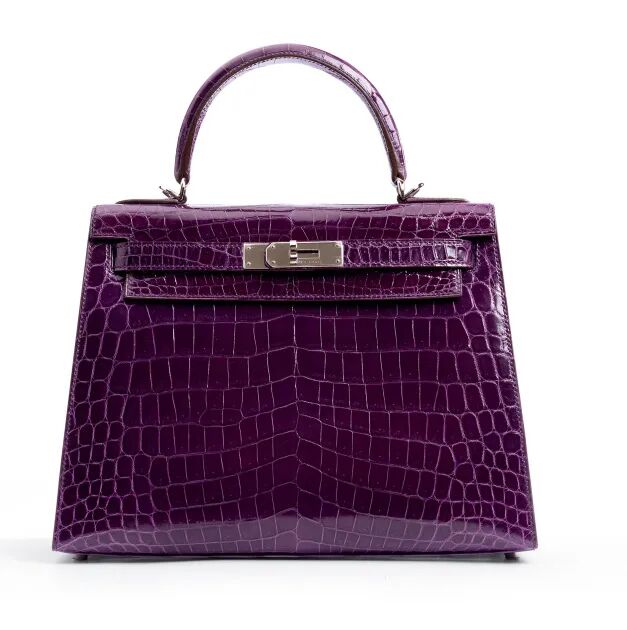 HERMES/爱马仕 水晶紫色kelly28银扣 鳄鱼皮