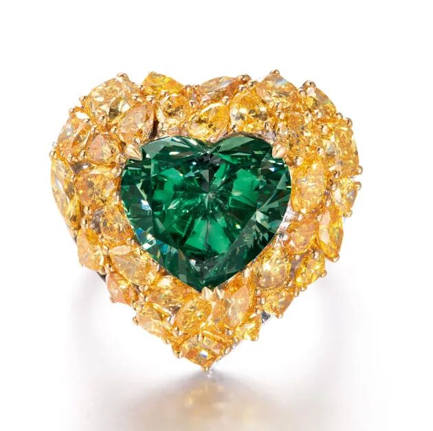 优雅的重约6.07克拉18k金天然黄绿钻石戒指