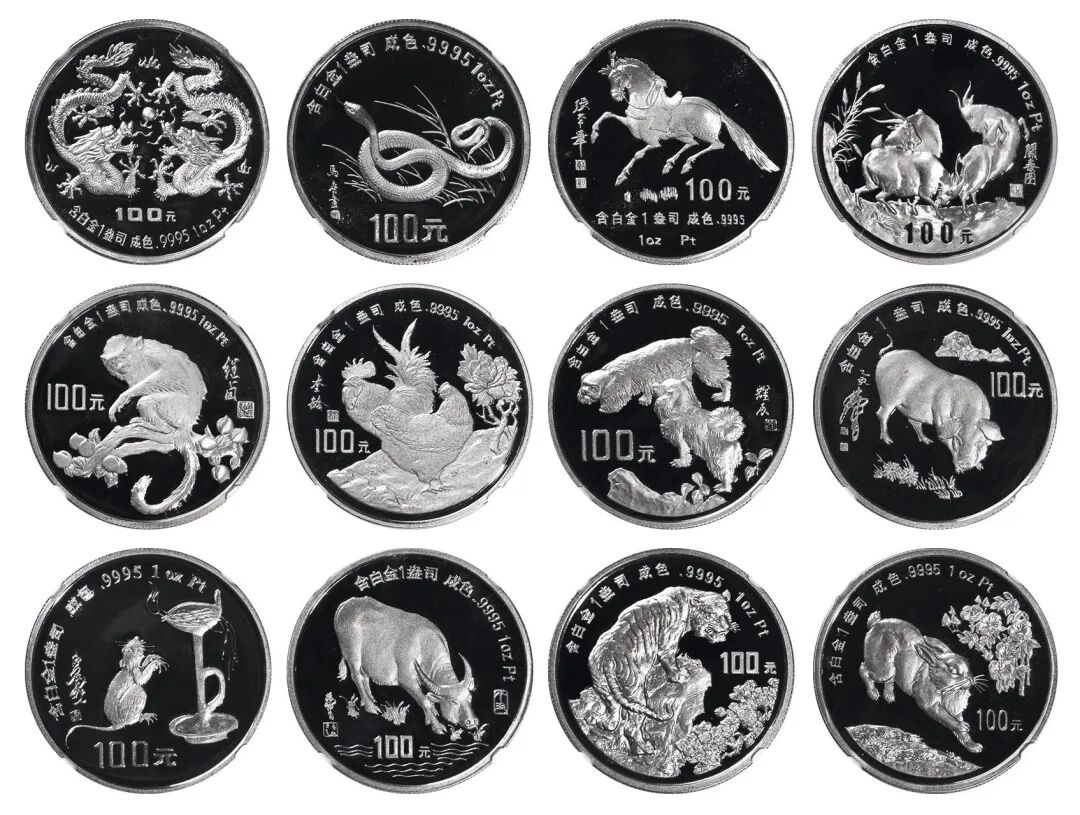 1988年至1999年1盎司铂金生肖币一组(十二枚)