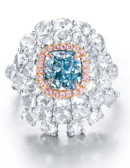 2.01克拉18k金天然蓝绿钻石戒指