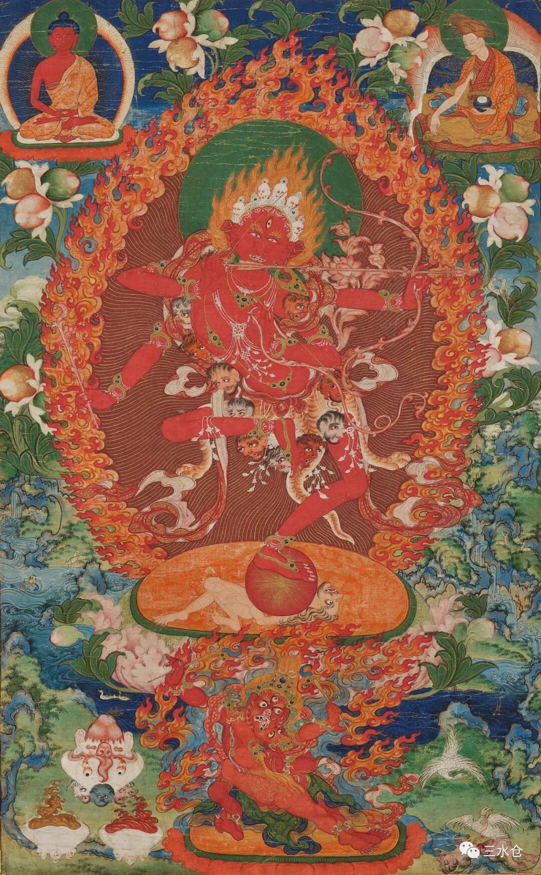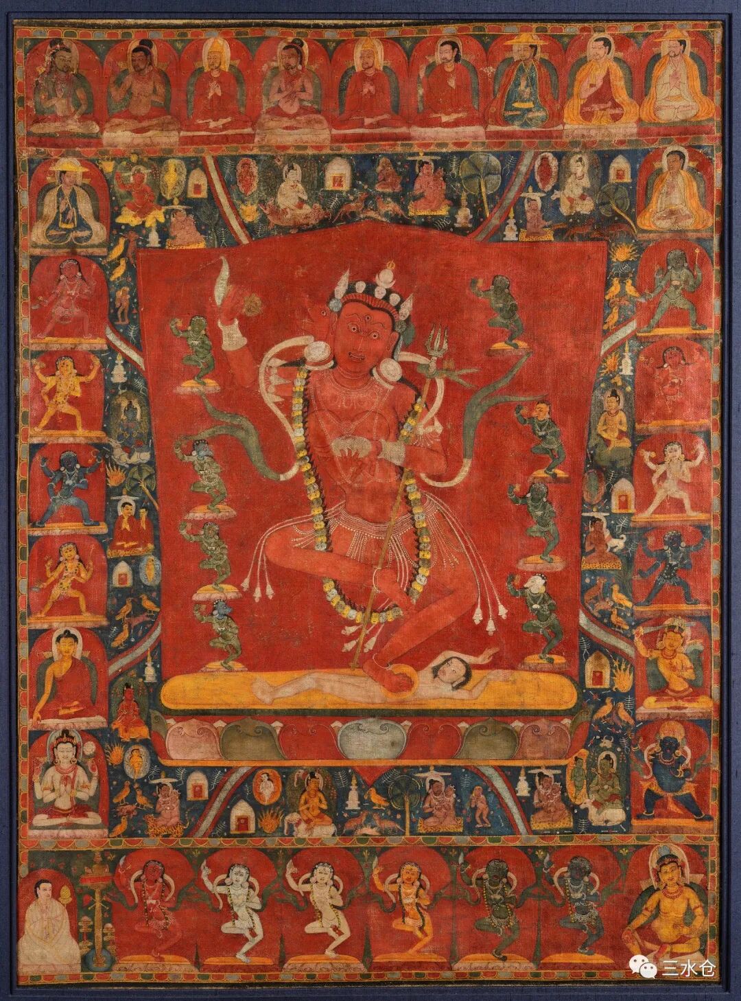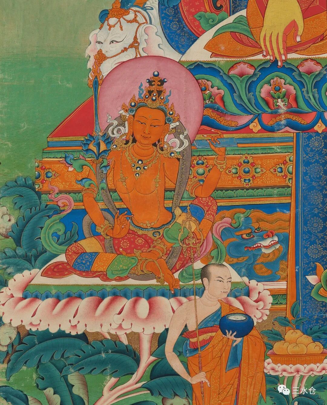 通过资料的搜索,Edward仅见的出自同一位艺术家手笔的唐卡,现藏北京故宫,是藏佛格鲁派献给乾隆皇帝的礼物。事实上,两幅唐卡同样承继了西藏中部十五世纪的钦孜画派风格,背景则带有十八世纪藏东绘画特色。