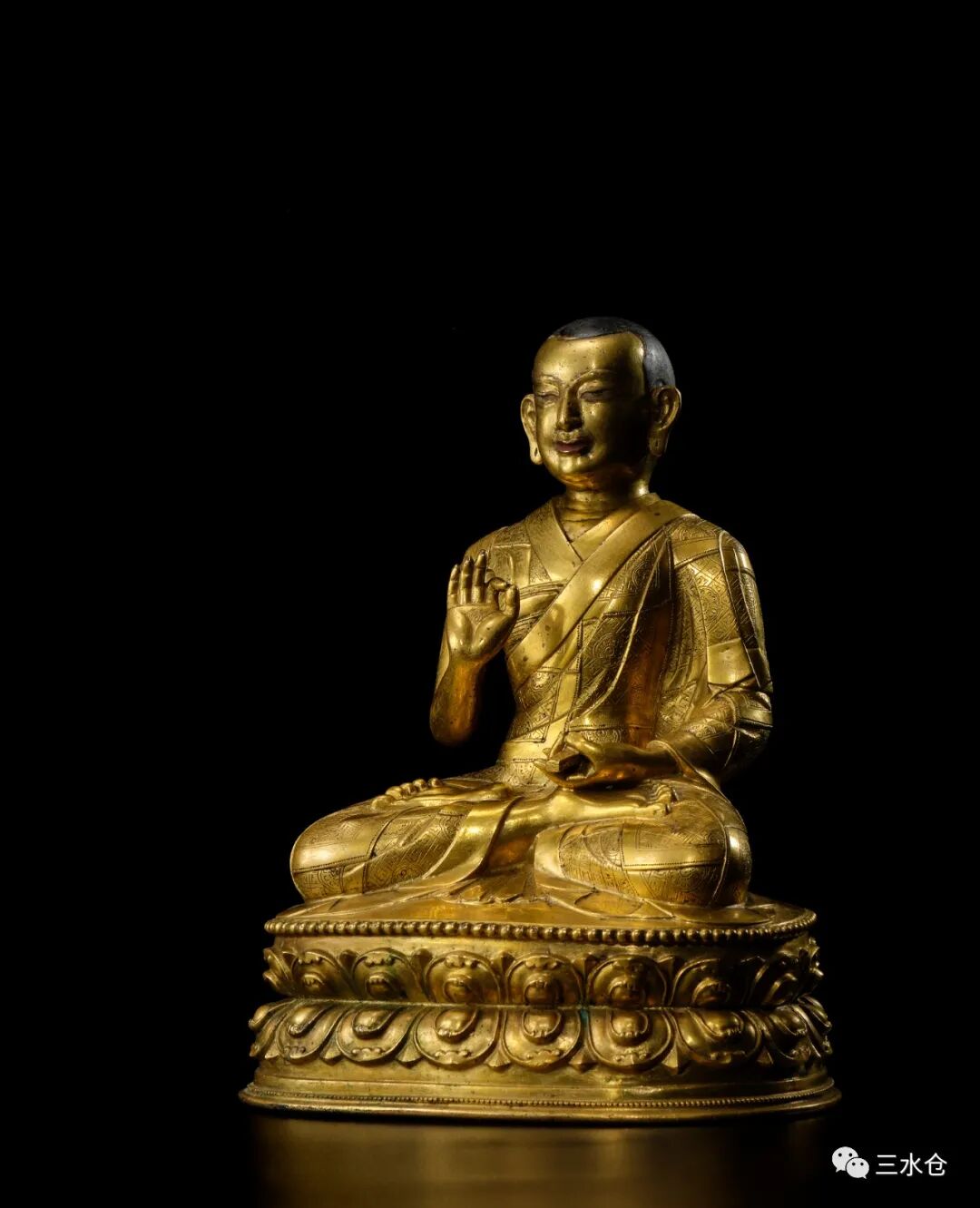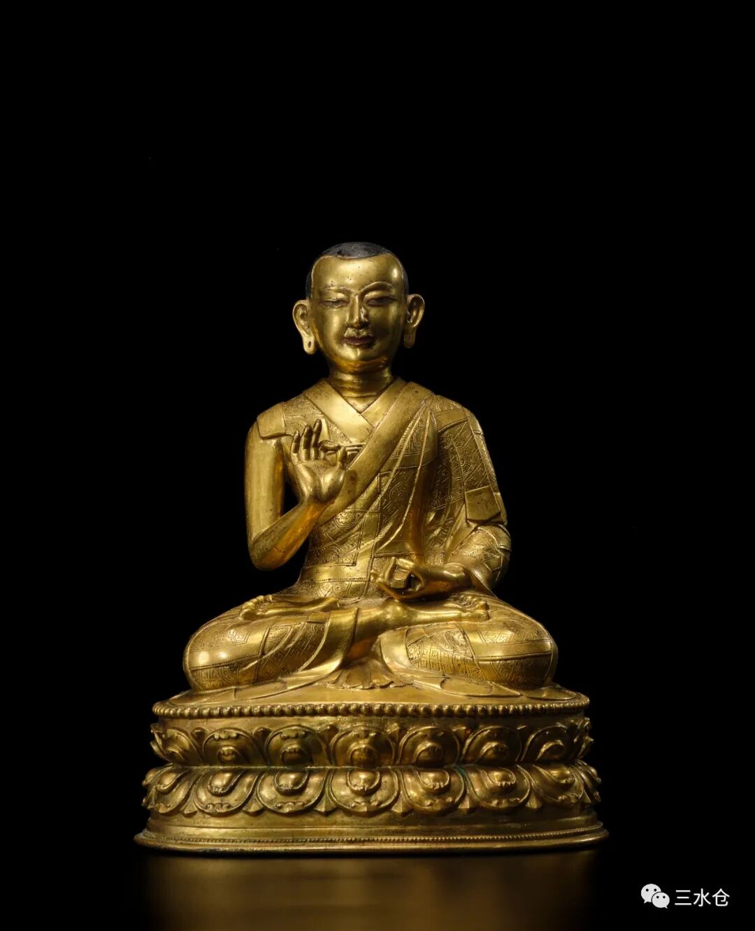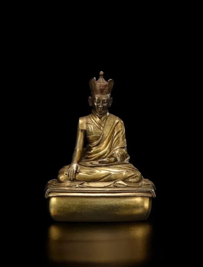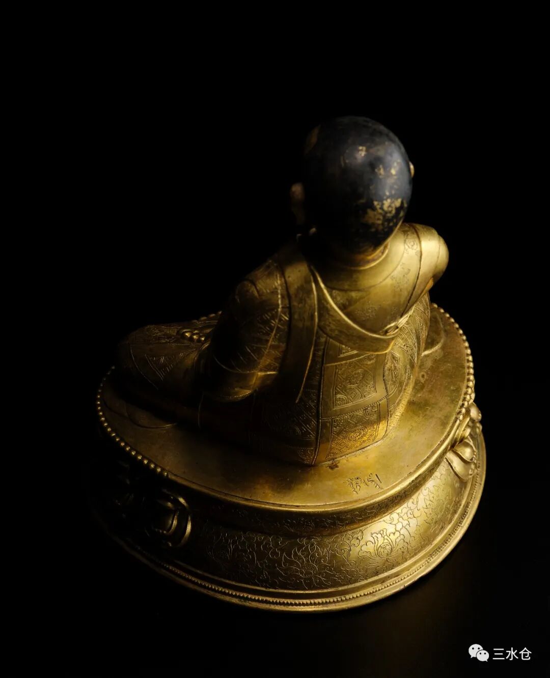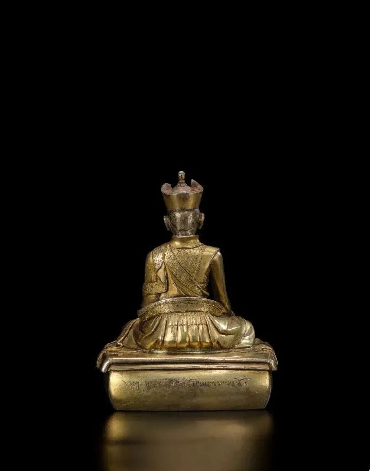 这件五世夏玛巴昆秋叶拉像也是拍场的封面作品,通过底座背面的铭文得以辨认其身份。这位高僧大德的相貌和精神状况,经由工匠的一双巧手,被记录下来。