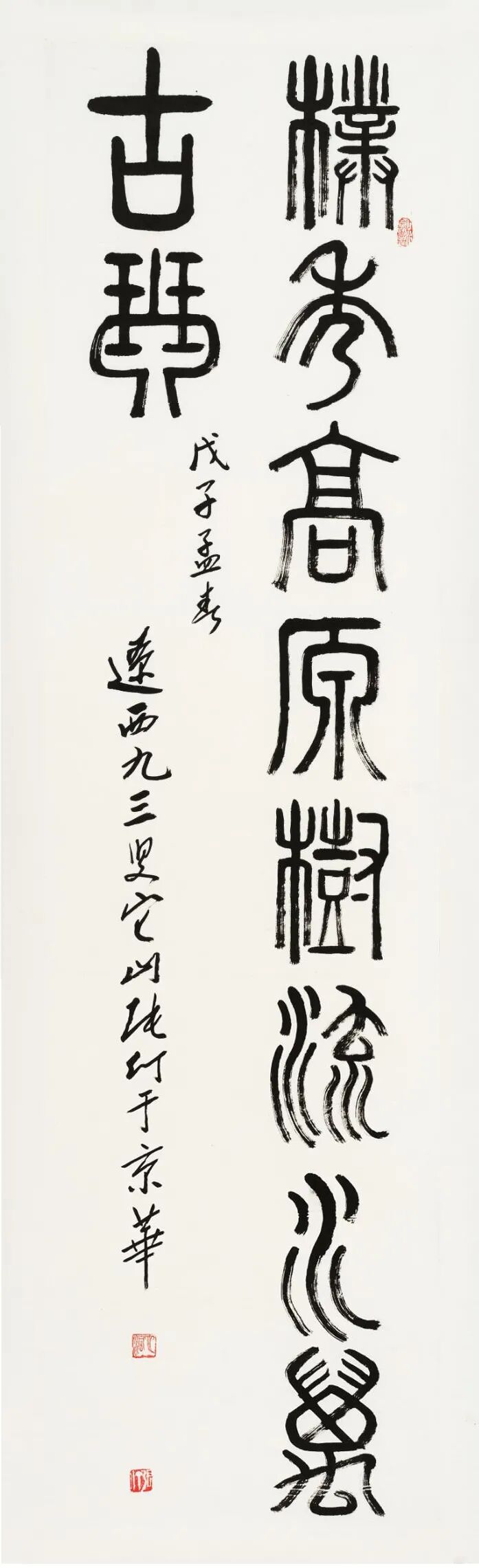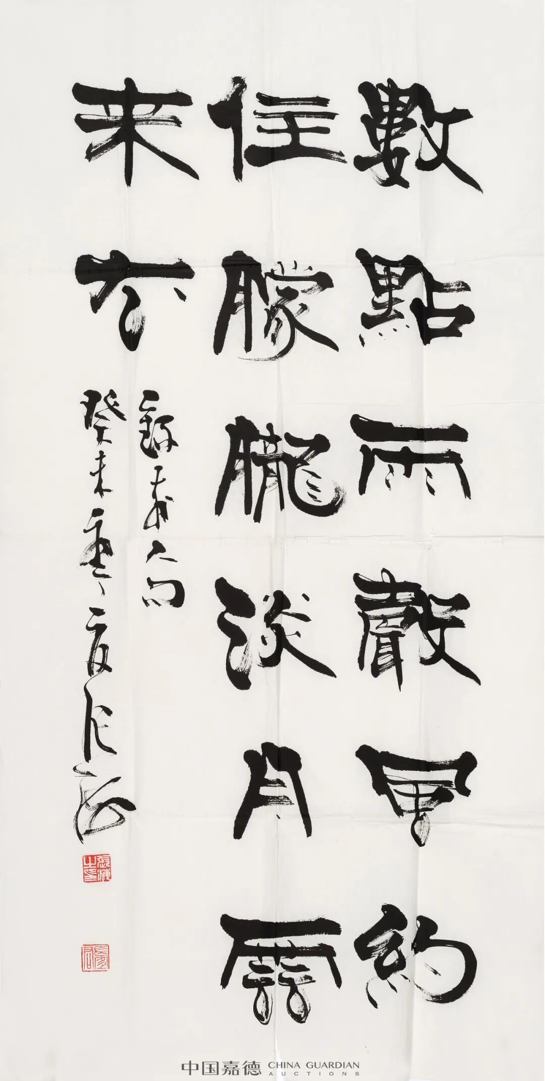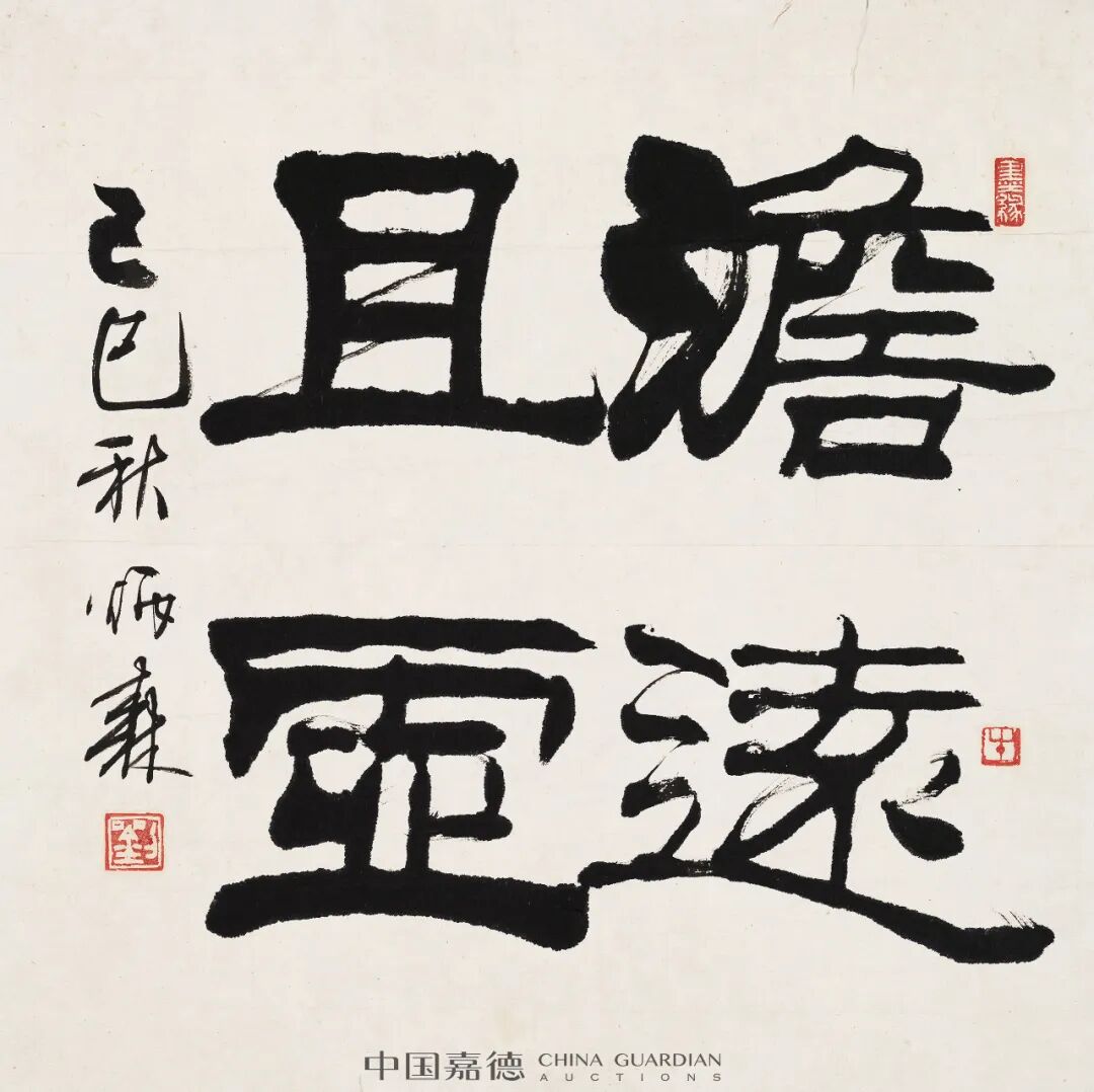 本次“名家书写”专题中涵盖了张仃、艾青、沈鹏、张海、刘炳森、石开、曾翔、丁观加、鲍贤伦、郎绍君、白谦慎一批名家之作。他们之中有深耕书法几十年者;有擅画者亦擅书者;也有将理论研究融入自我书写者,构筑出各不相同的笔墨情趣与书韵品格。白谦慎的小楷儒雅温润、鲍贤伦的隶书抱朴而行、张鹏的行草放逸洒脱,更有袁武、管峻、周韶华、田黎明等人带有吉祥纹饰的吉言吉语书写,在年节到来之际以飨藏家。
