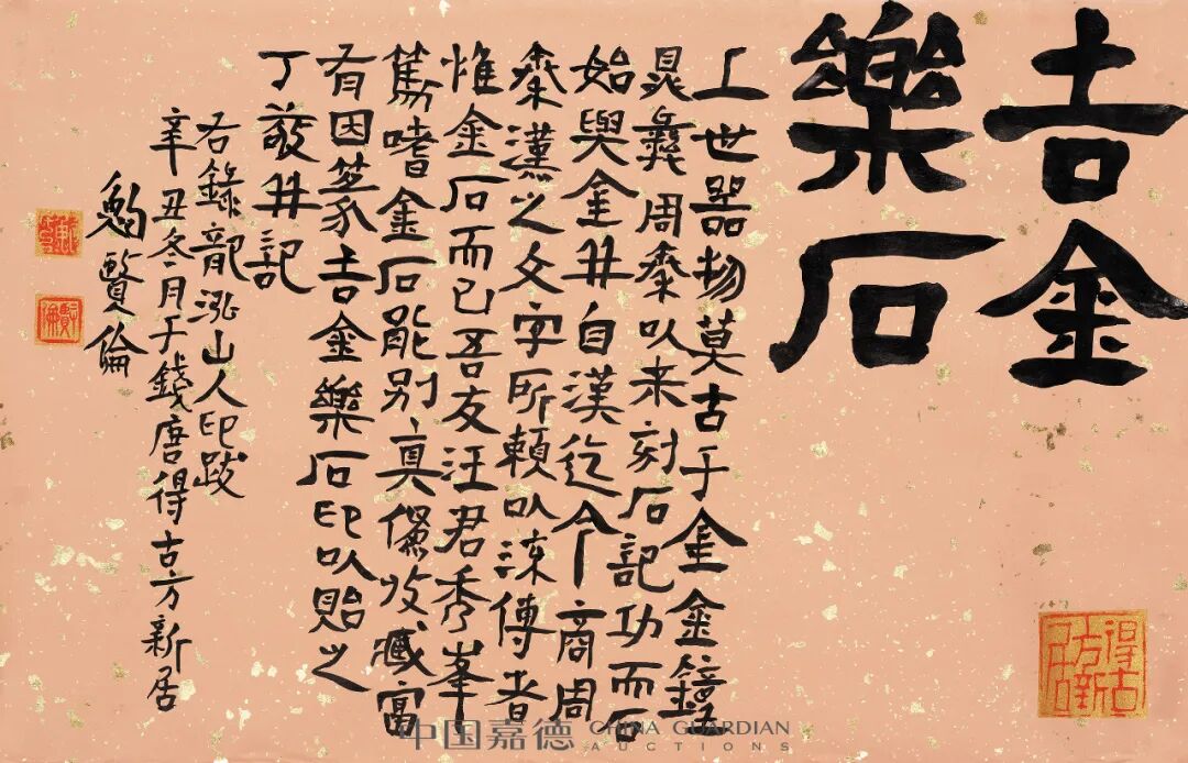说明:原藏家直接得自艺术家本人;书法材料为锦龙堂传统手工洒金蜡笺纸。