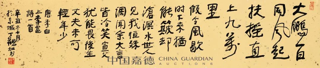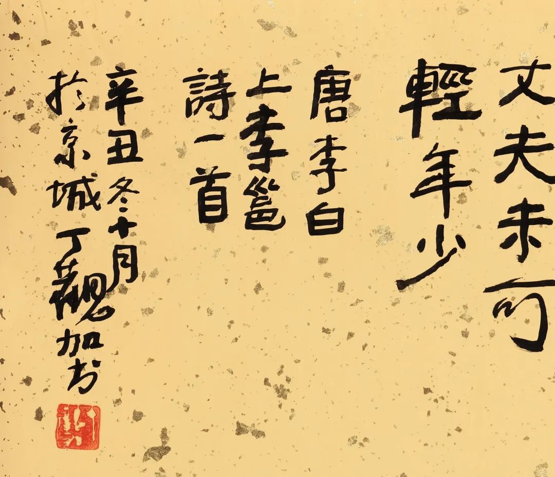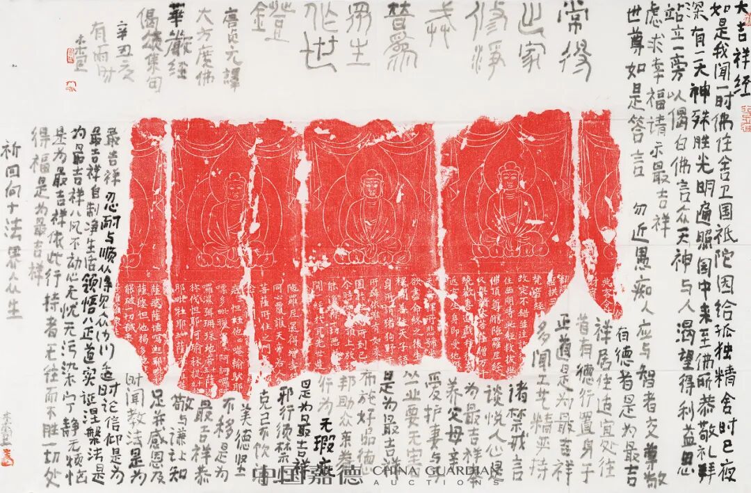 说明:原藏家直接得自艺术家本人;作品书法材料为锦龙堂传统手工洒金蜡笺纸。