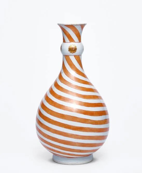 清康熙 矾红仿料器弦纹蒜头瓶