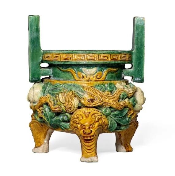 明 三彩琉璃釉龙纹鼎式炉