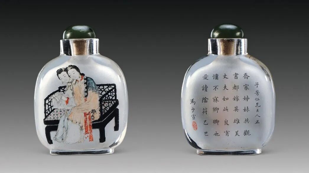 20世纪 马少宣内画二乔共读图烟壶